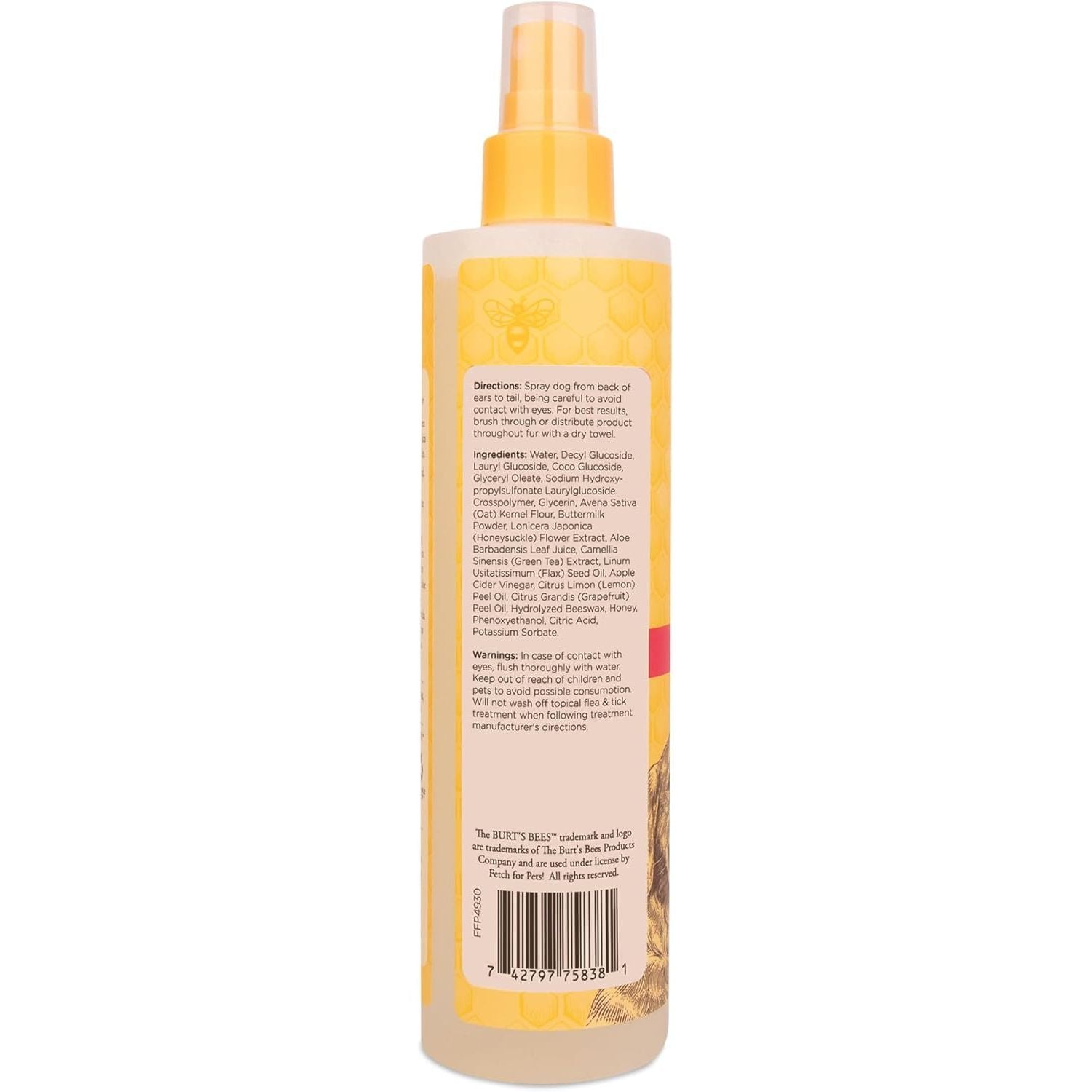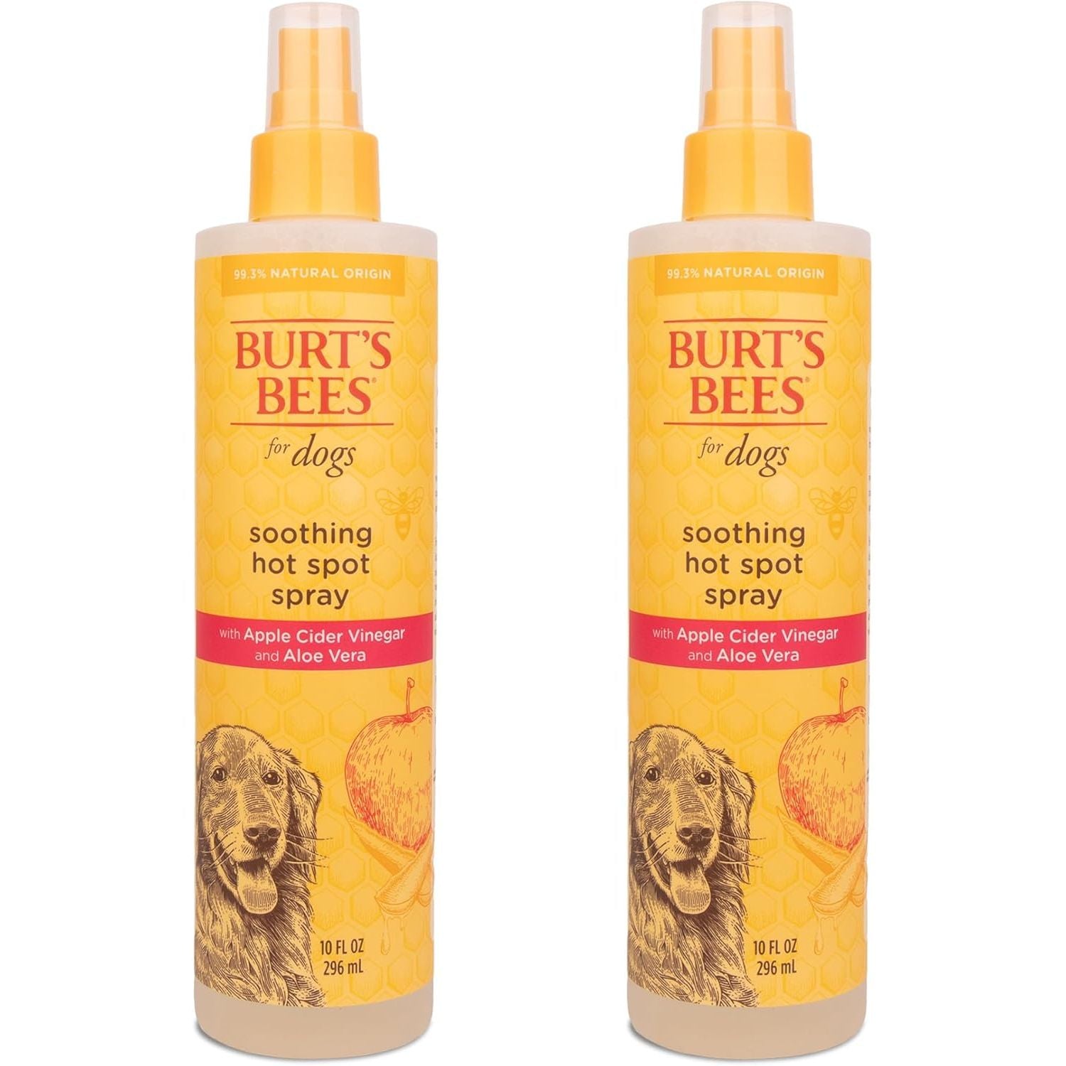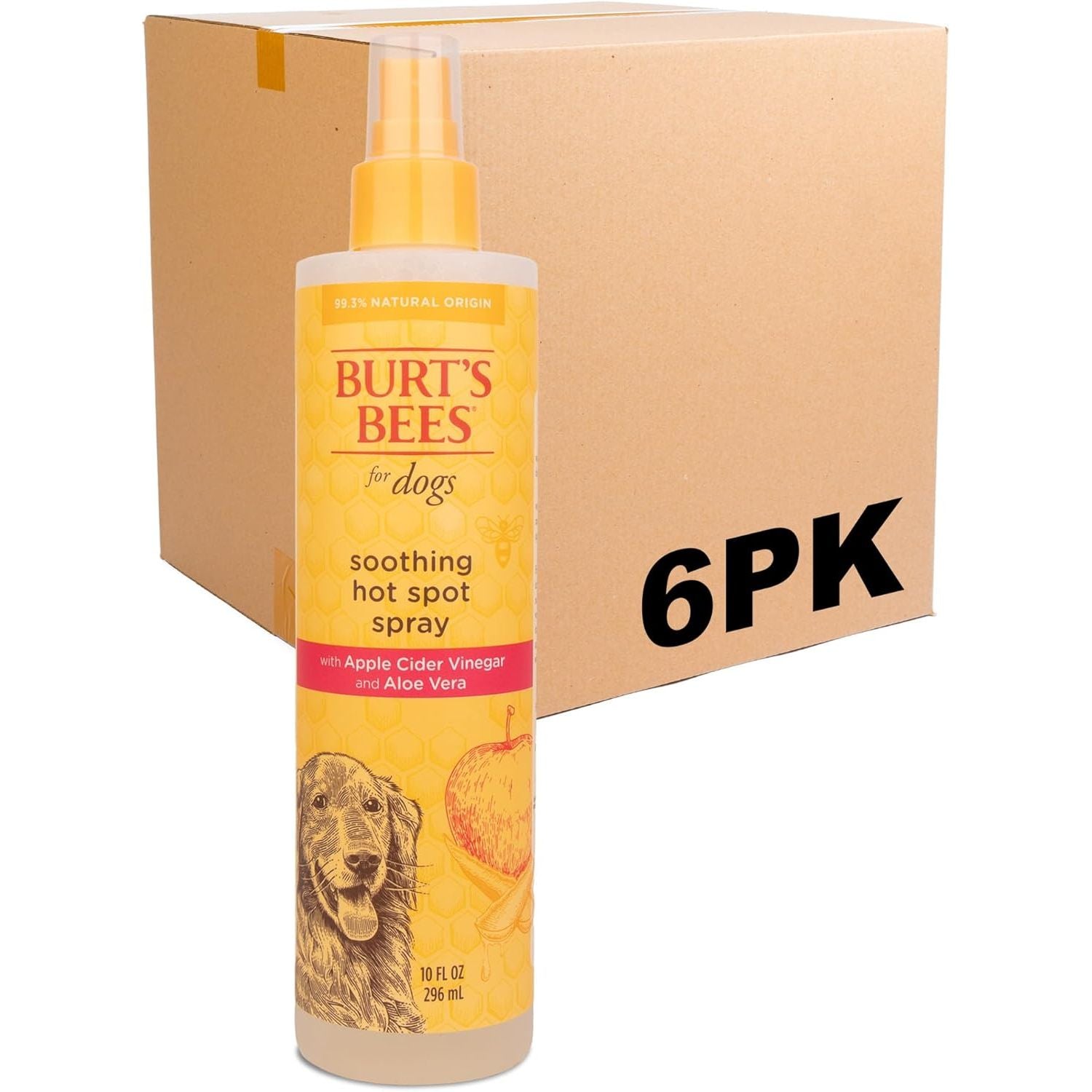 Product Description Since 1984, Burt’s Bees has been working with nature to create products that nourish your skin. With the same mission in mind, we created a custom formulated range of dog grooming formulas to bring the same quality to the lives of our pets. Burt’s Bees™ for Pets™ Hot Spot Dog Spray soothes itching while it nourishes and moisturizes their skin and coat. Leveraging the power of naturally derived ingredients, apple cider vinegar and aloe vera soothes irritated hot spots while honey acts as a conditioner and regulates the delicate pH unique to pets, delivering a high shine finish. All our dog grooming products utilize 95%+ natural origin formulas and are formulated without chemical detergents, phthalates, parabens, or sulfates. Our dog grooming products are also formulated without added colorants and dyes. Burt’s Bees naturally derived pet grooming solutions keep pets clean and pet parents happy! Our hot spot dog spray is cruelty-free and made in the USA with global ingredients, using 80% post-consumer recycled bottles and responsible sourcing. Directions: Spray your dog from back of ears to tail and let dry. For face and ears, apply first to a towel then wipe on fur and avoid eyes. Repeat as needed. brand_description Burt's Bees for Dogs