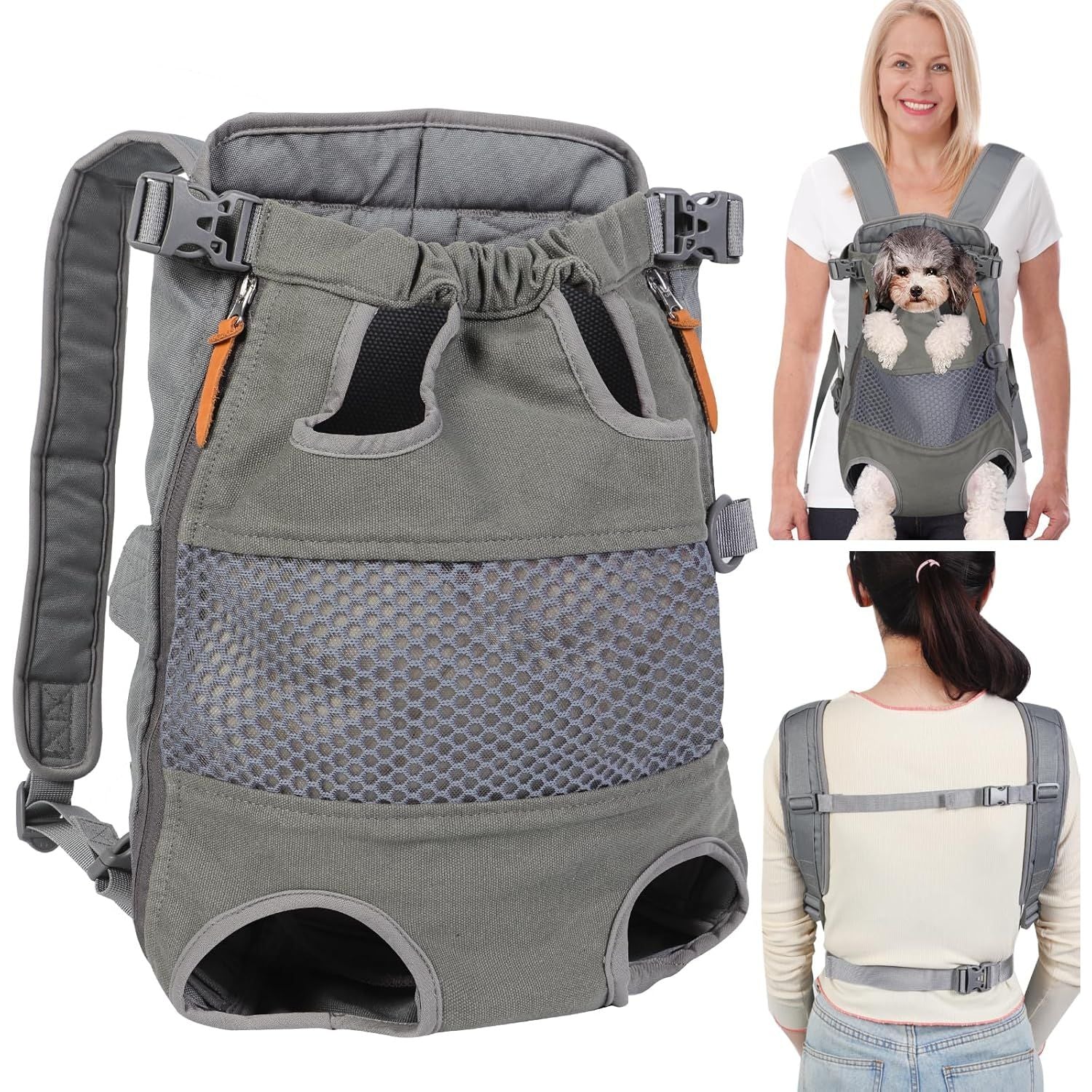 Pet Knapsack Legs-Out Dog Front Carrier Hands-Free Chest Backpack Canvas Bag for Dog Cat Puppy Traveling Hiking Outdoor