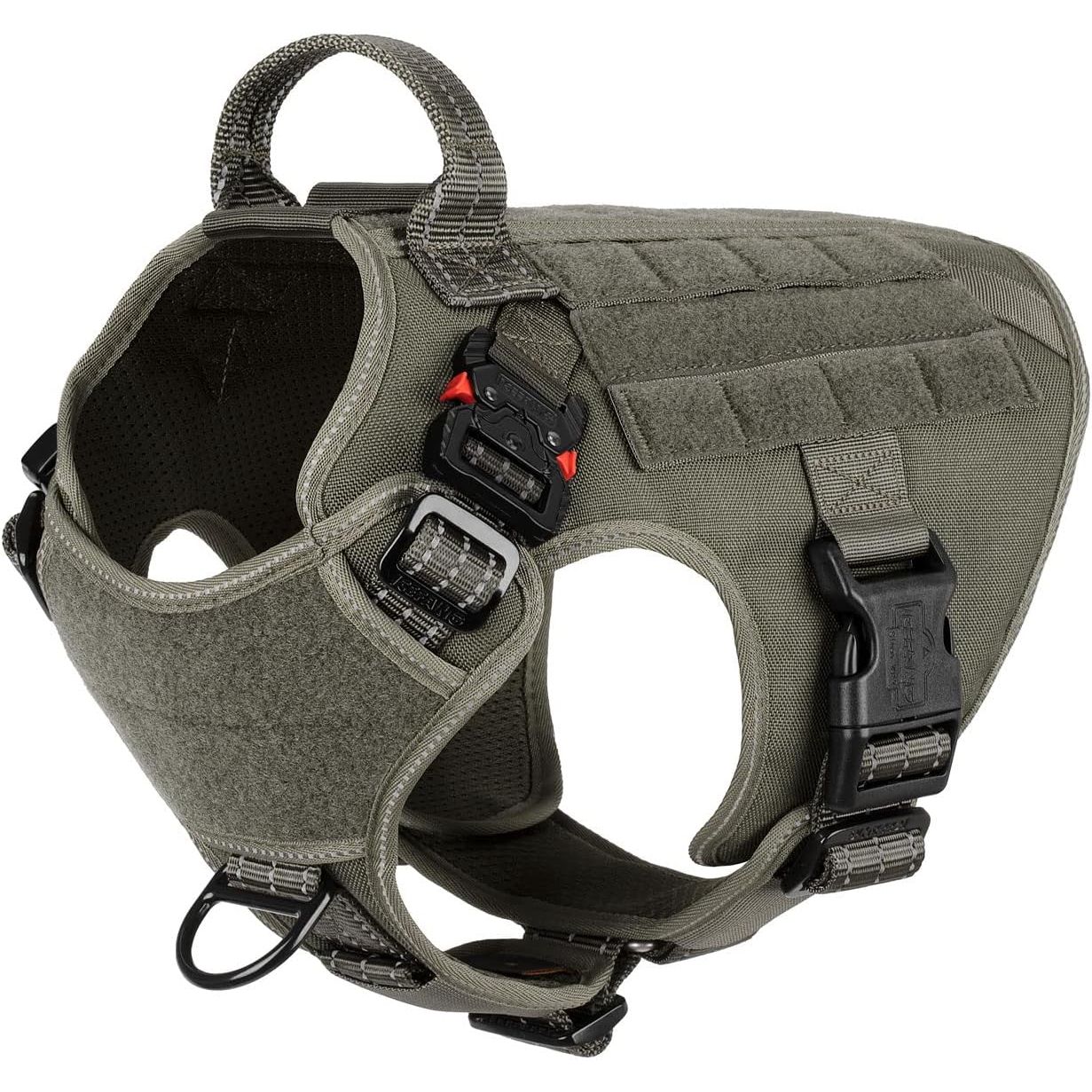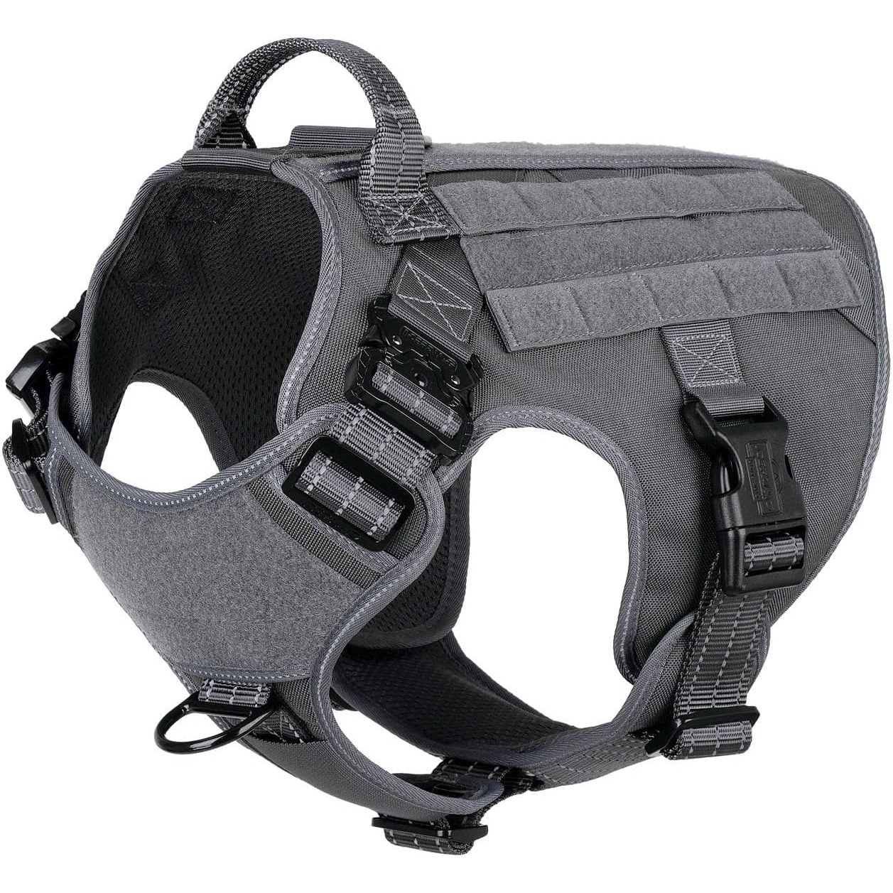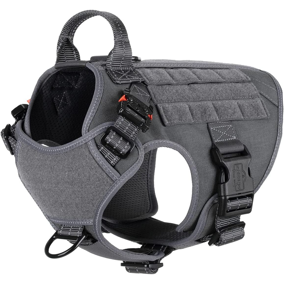 - [Sturdy and snug-fitting]: this dog vest features 2 x aluminium metal buckles (2800N ) on the neck and 2 x plastic buckles (1500N ) on the chest. All seams are reinforced, allowing you to easily and quickly put on and take off without making your dog uncomfortable.It is designed with 5 adjustment points, ensuring a snug fit and making it difficult for dogs to escape