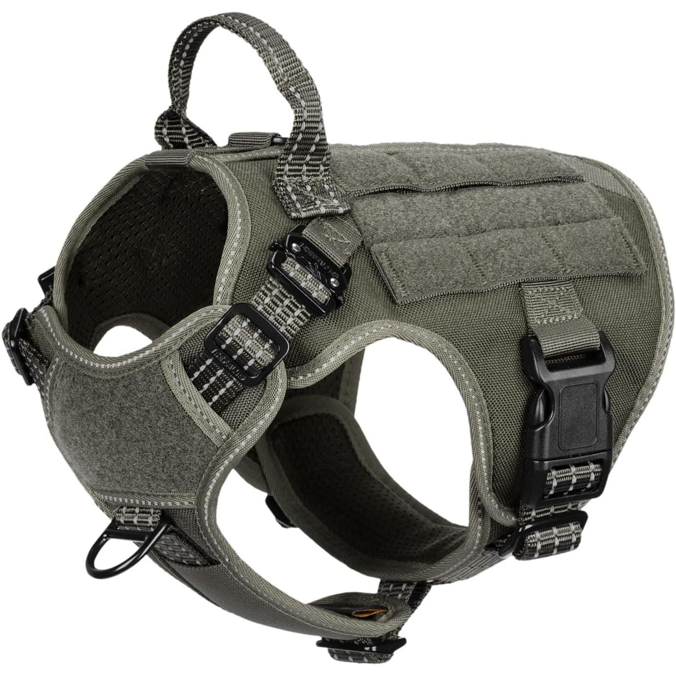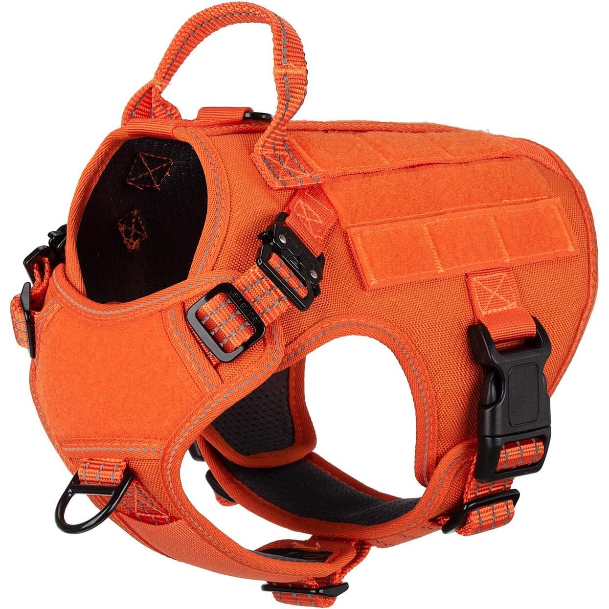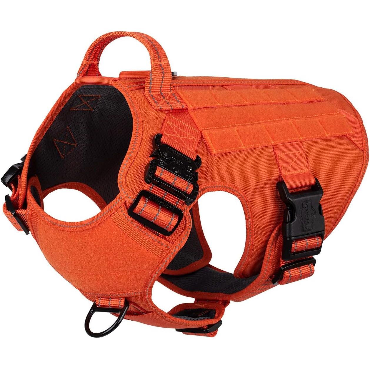 - [Sturdy and snug-fitting]: this dog vest features 2 x aluminium metal buckles (2800N ) on the neck and 2 x plastic buckles (1500N ) on the chest. All seams are reinforced, allowing you to easily and quickly put on and take off without making your dog uncomfortable.It is designed with 5 adjustment points, ensuring a snug fit and making it difficult for dogs to escape