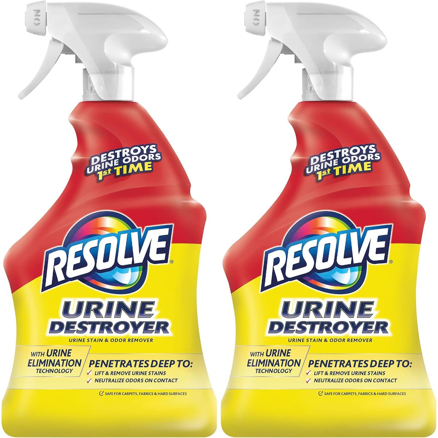 Resolve Urine Destroyer permanently eliminates urine stains, neutralizes odors on contact and helps prevent pet remarking. Formula utilizes high efficacy 100% bio-based polymer technology to remove the odor- causing molecules. Great for both pet and people accidents. Safe for use on carpets, area rugs, upholstery, fabrics, car interiors and hard floors (vinyl, ceramic and hardwood floors).