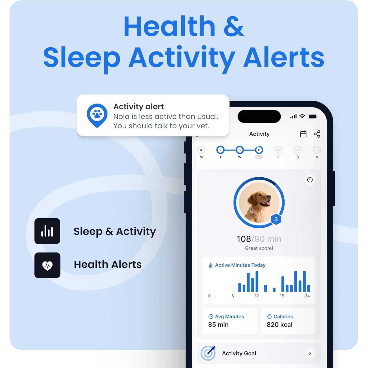 - HEALTH & ACTIVITY ALERTS: The tracker learns your dog’s normal behavior and detects changes. If it notices unusual sleep or activity patterns you’ll receive an alert so you can take action early.