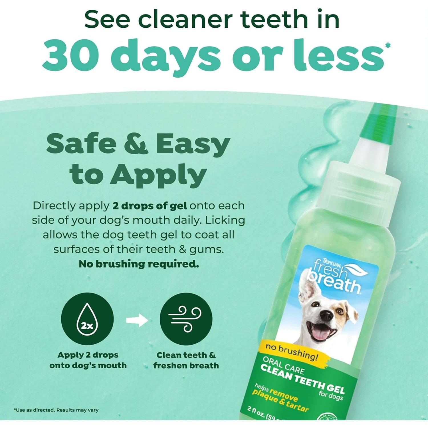 • Freshens Breath: Say bye to doggy breath with a mint gel that leaves your pet with a fresh, clean mouth.