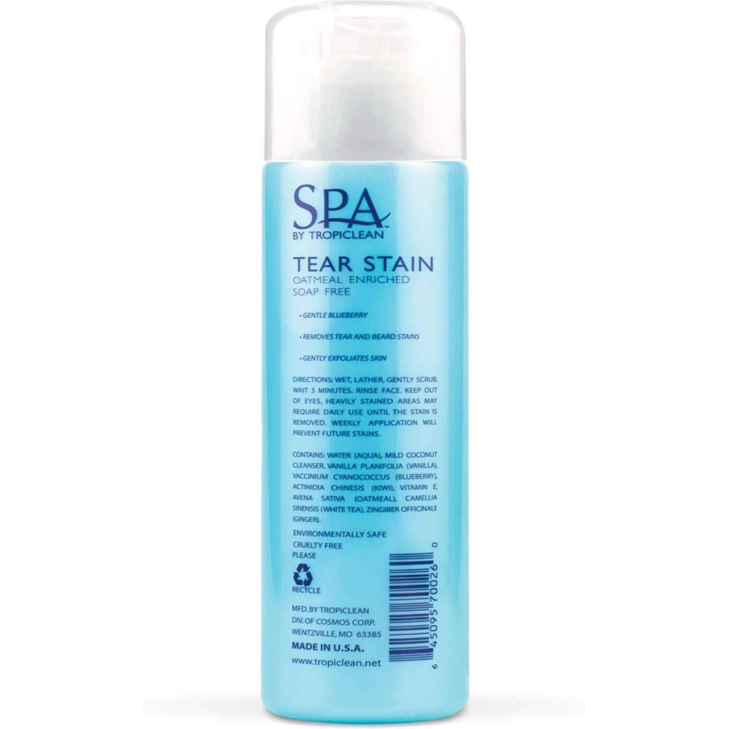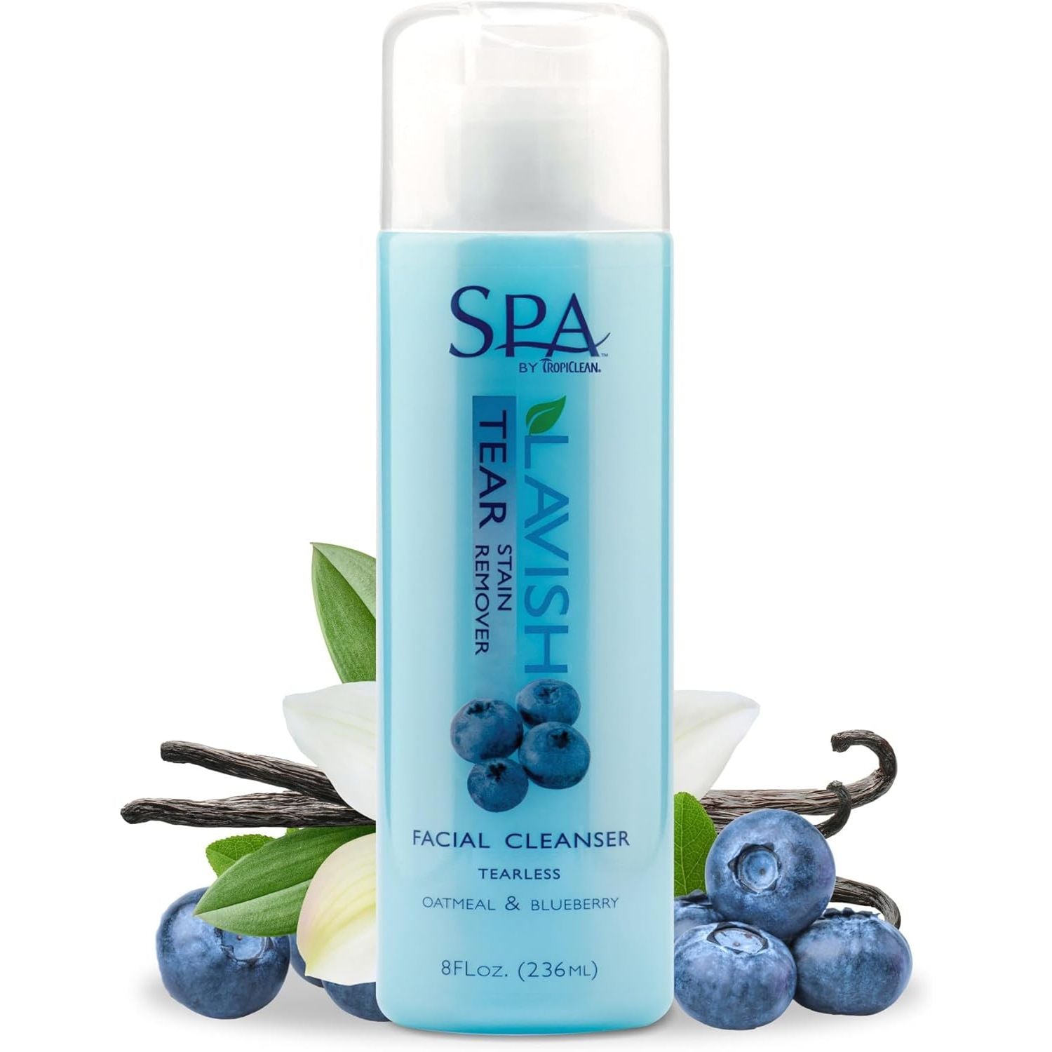 TropiClean SPA Tear Stain Remover for Dogs | Blueberry Facial Shampoo | Odor Eliminator | Tearless | Whitening and Brightening | Made in USA | 8oz.