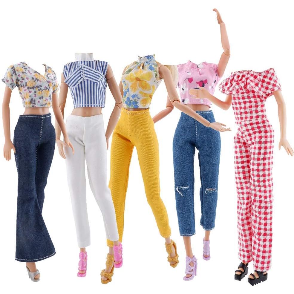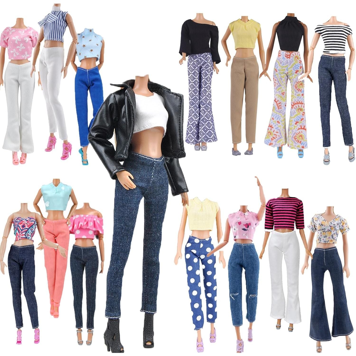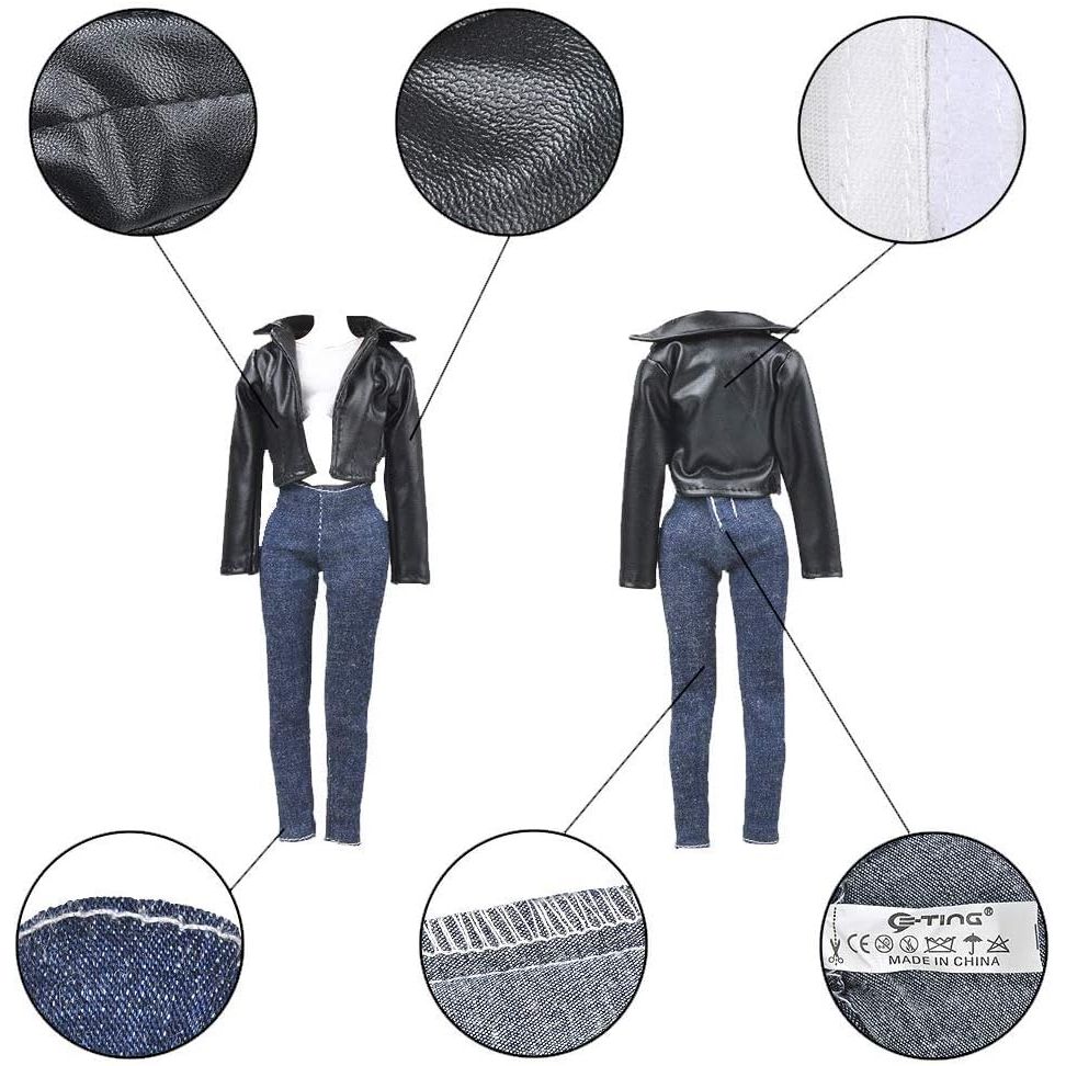 - E-TING Lot 15 Items = 5 Sets Doll Clothes with 10 Pair Shoes Accessories for 11.5 Inch Girl Doll Outfits Random Style(Leather Jacket + Casual Wear)