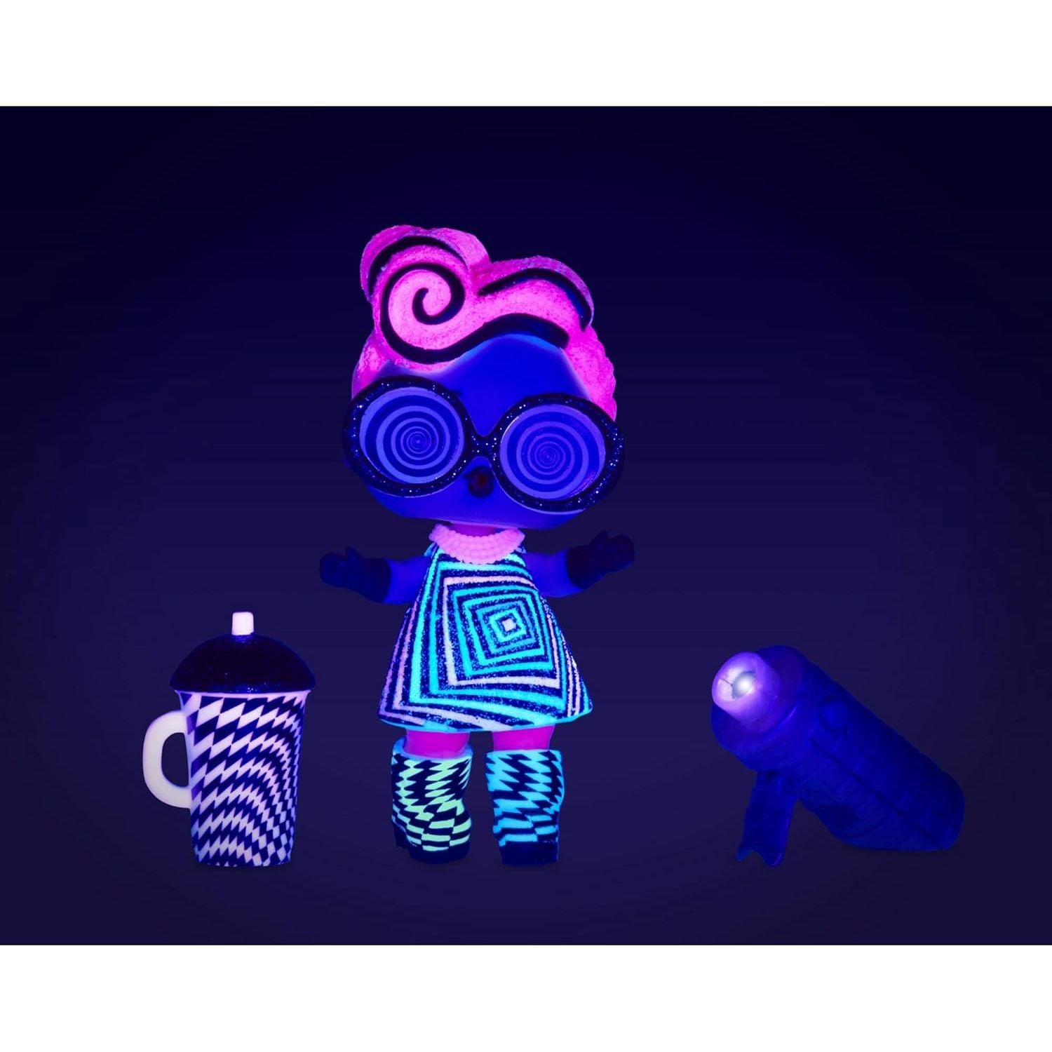 - Shine the included black light on your doll to reveal black light surprises.