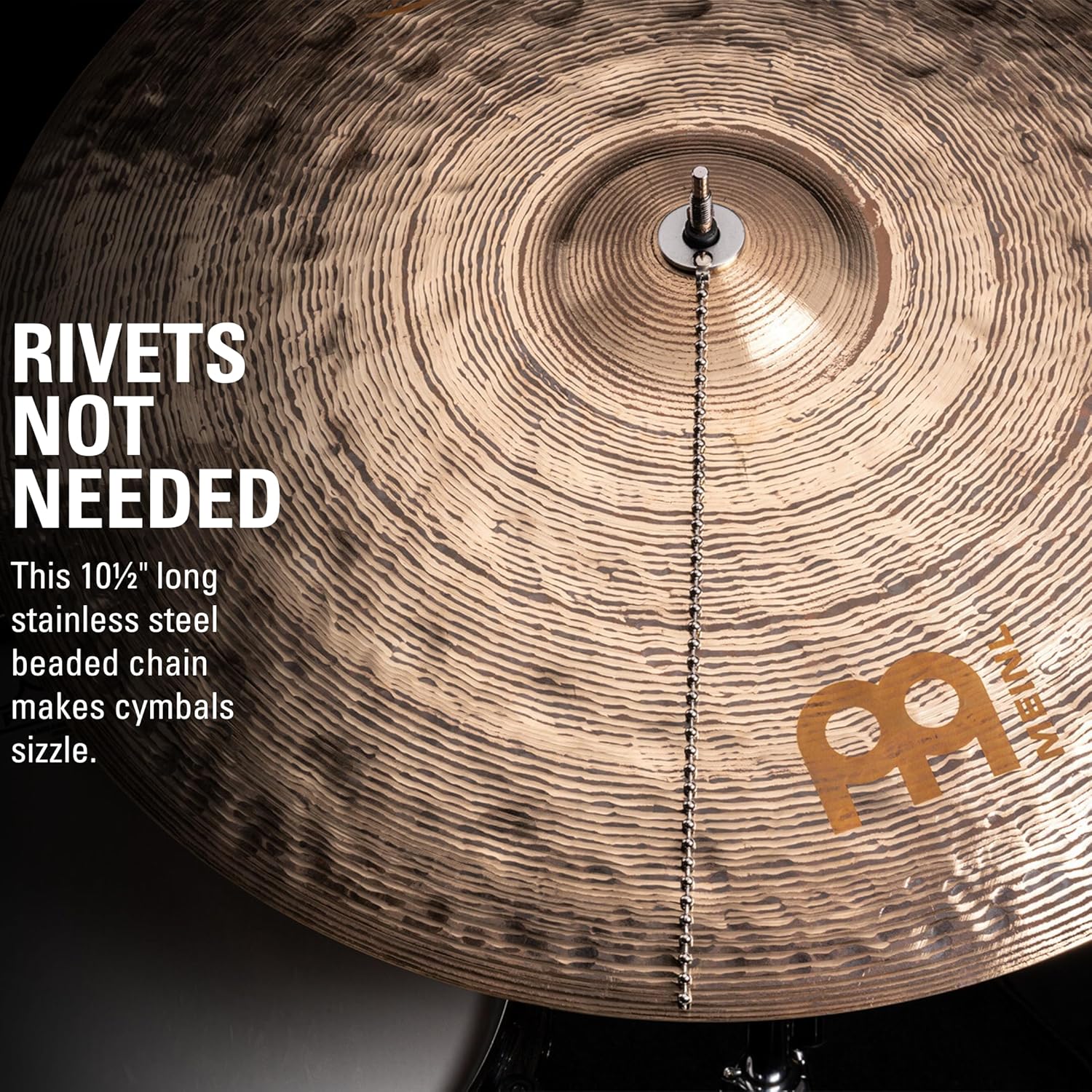 - HOW IT WORKS: the light stainless steel beaded chain reacts by bouncing on your cymbal while you play; this gives you a sizzling sustain with every note whether you play with sticks or brushes