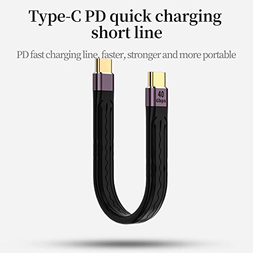 APEXSUN Short USB C Cable,USB C Male to USB C Male FPC Design 0.4 ft flex cable Support Thunderbolt 4/3,USB4.0, PD 100W Quick Charge,8K Video,40Gbps Transfer for External SSD, EGPU, Docking,MacBook,Phone,PowerBank,E-Mark Chip in Black Features: SuperSpeed Data Transfers: Thunderbolt 4 and USB 4.0 cable Delivers data transfer speeds of up to 40 Gbps. 8K display: Supports Single 8K@60Hz Dual 4K@60Hz displays with exceptional video bandwidth, or display 4K on two screens simultaneously. Fast Charging: Built-in E-Mark Chip and safely and reliably delivers up to 20V 5A 100W of power. Ensure you're giving your device an smart and optimized charge. More Durable Premium FPC flex core and TPE flexible cable outer body,it can withstand 15,000 bends and 15,000 insertions and removals. Wide Compatibility: Support Thunderbolt 4 and Backward compatible with Thunderbolt 3, USB4, USB 3.1, USB 3.0, and USB 2.0. List of Compatible Devices(not all): Mac Book Pro 2016/2017/2018/2019/2020/2021 iMac, Mac Book Air 2018/2019/2020/2021, iMac Late 2017; iPad Pro 2021/2020/2019/2018; Microsoft Surface Book, Google Chromebook Pixel; Dell XPS, mDell Precision 5510, mDell Inspiration 15 7000, HP Spectre, Chromebook 13 G1; Lenovo Yoga 900/910/920/720, Lenovo Carbon X1 series, ThinkPad P50 / P70; Samsung Galaxy S8 + Tab Pro/ Notebook 9(950XBE), Acer Switch Alpha 12, Notebook 9(950XBE), Acer Spin; Thunderbolt 4/3 Docking Stations,USB C Hub, Storage,External SSD, EGPU and Peripheral Devices Package Contents: 1 PCS Thunderbolt 4 USB 4.0 Short USB C Cable