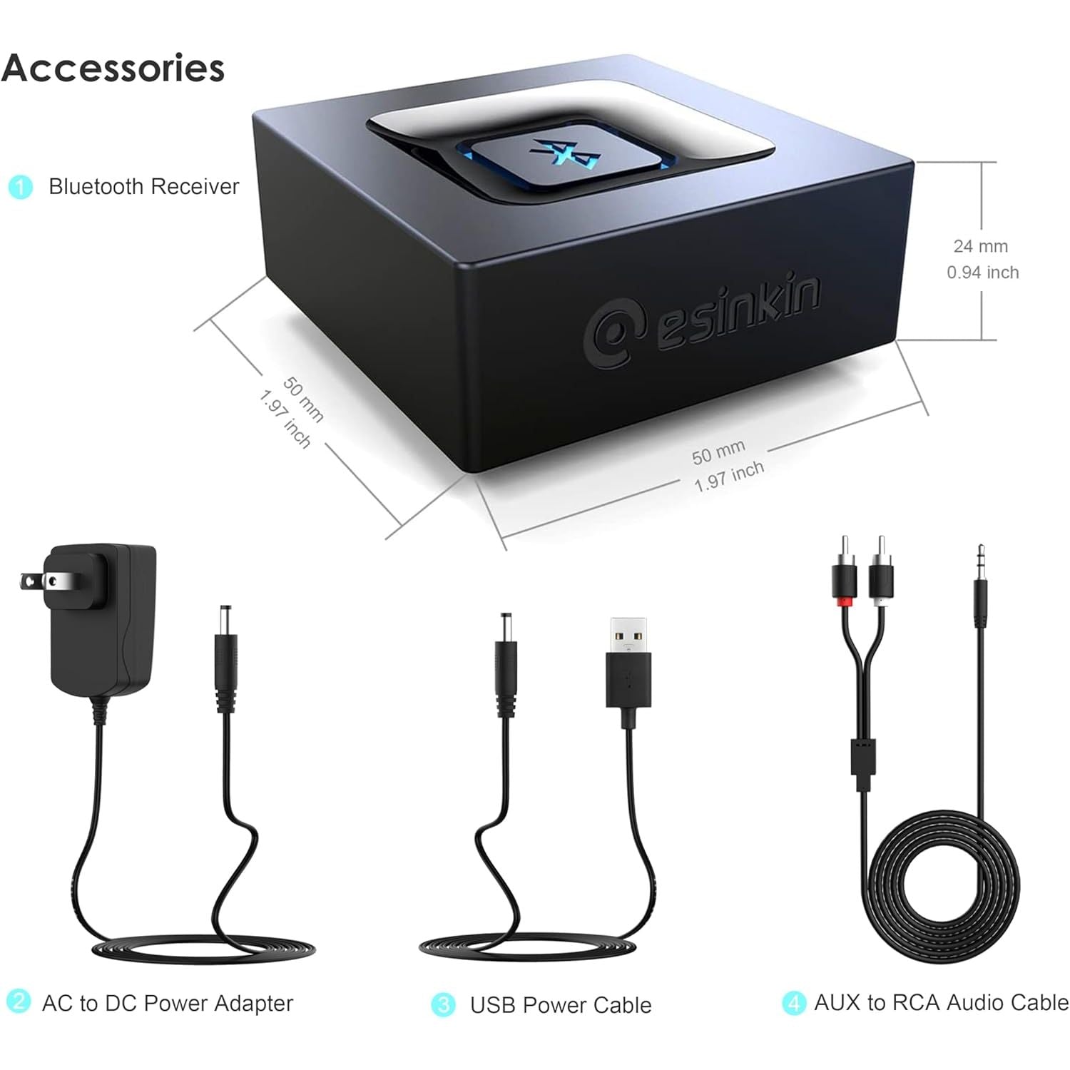 - Bluetooth Audio Adapter for Music Streaming Sound System, Esinkin Wireless Audio Adapter Works with Smartphones and Tablets, Bluetooth Receiver for Home Stereo