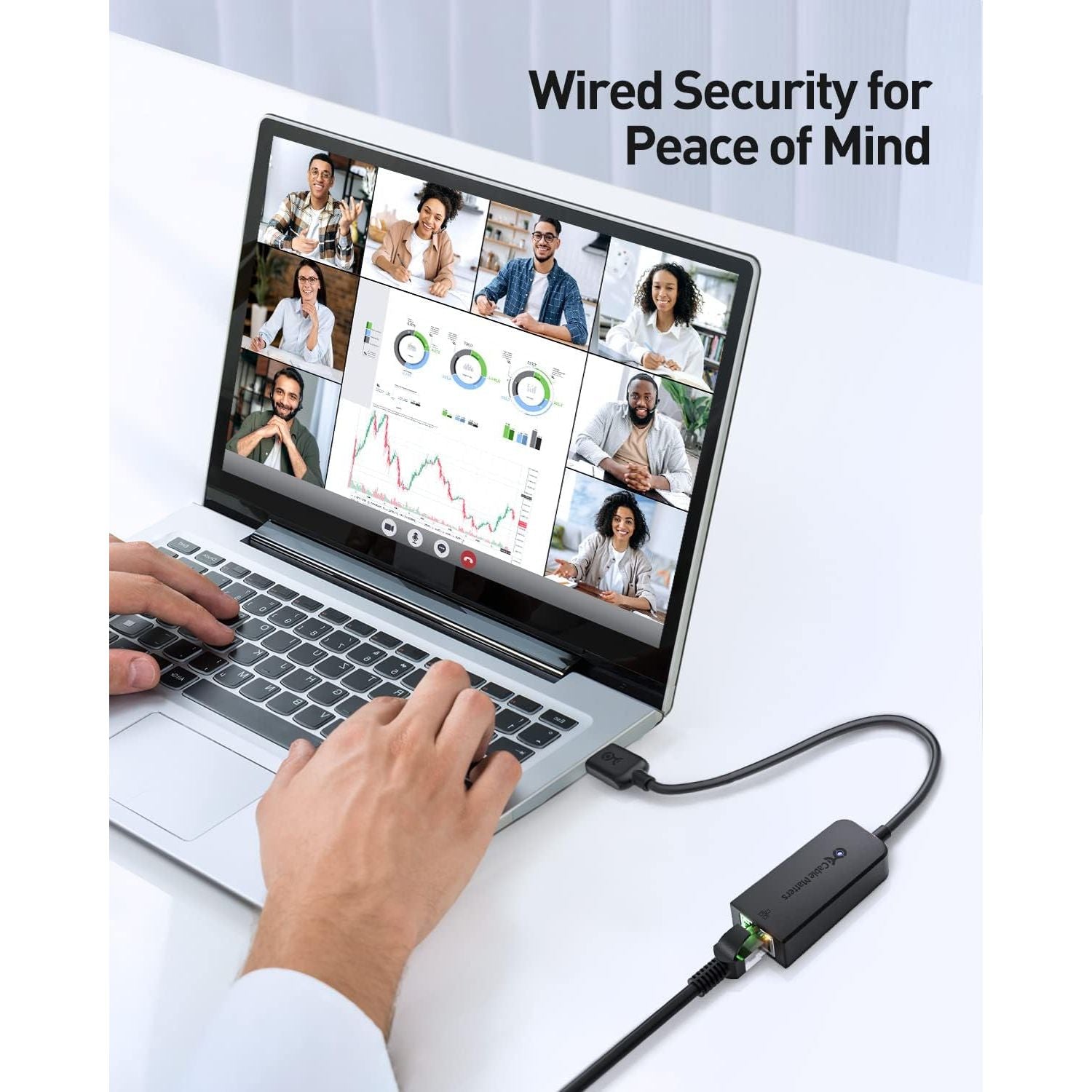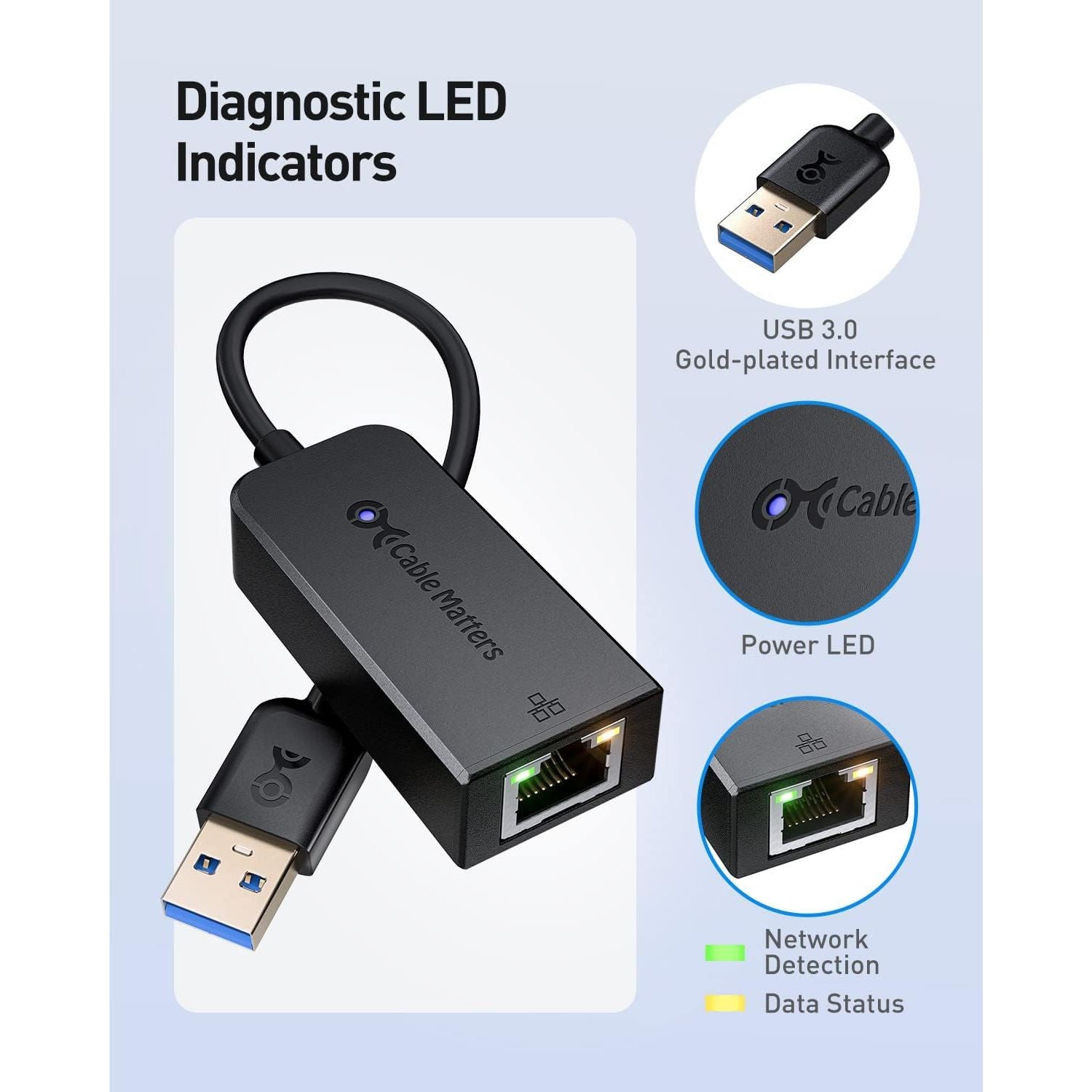 The Cable Matters USB 3.0 to Gigabit Ethernet Adapter is specifically designed to provide network capabilities to the older computers or new thin notebooks without an Ethernet port. Instantly add network connectivity to a computer with USB 3.0 for extremely fast file transfers or streaming downloads. Wired connections provide faster data transfers and better security than a Wi-Fi connection.