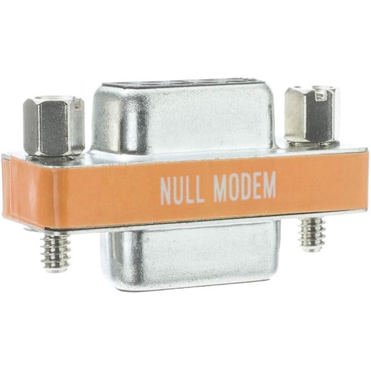This adapter will convert a male DB9 null modem cable end into a female or allow you to couple two cables together.