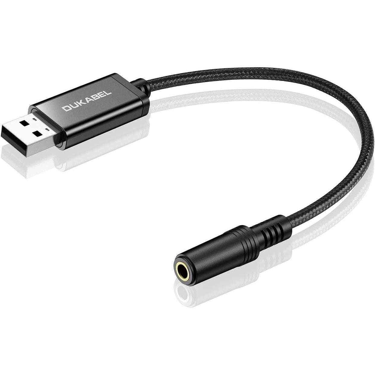 - DUKABEL USB Headphone Adapter, External Sound Card with TRRS 4 Pole Jack, Mic-Supported USB to 3.5mm Audio Apdater for PC PS4 PS5 and More [9.8 inch]