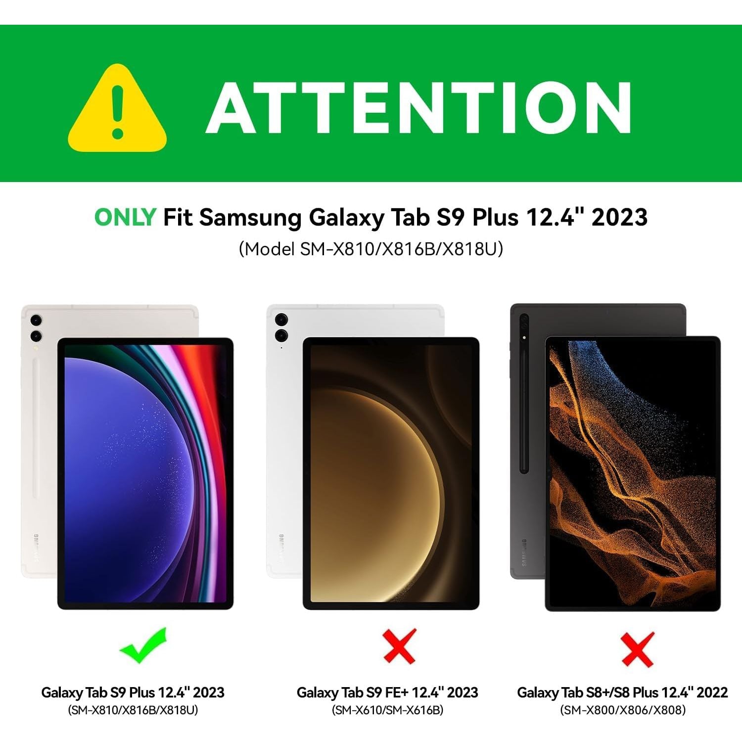 - [Compatibility]: Please note: This case with keyboard is specially designed for Samsung Galaxy Tab S9 Plus 12.4 inch 2023: Model (SM-X810/X816B/X818U). It is not compatible with Samsung Galaxy or other device models. Before you order, please check the back of your iPad to confirm the model number.