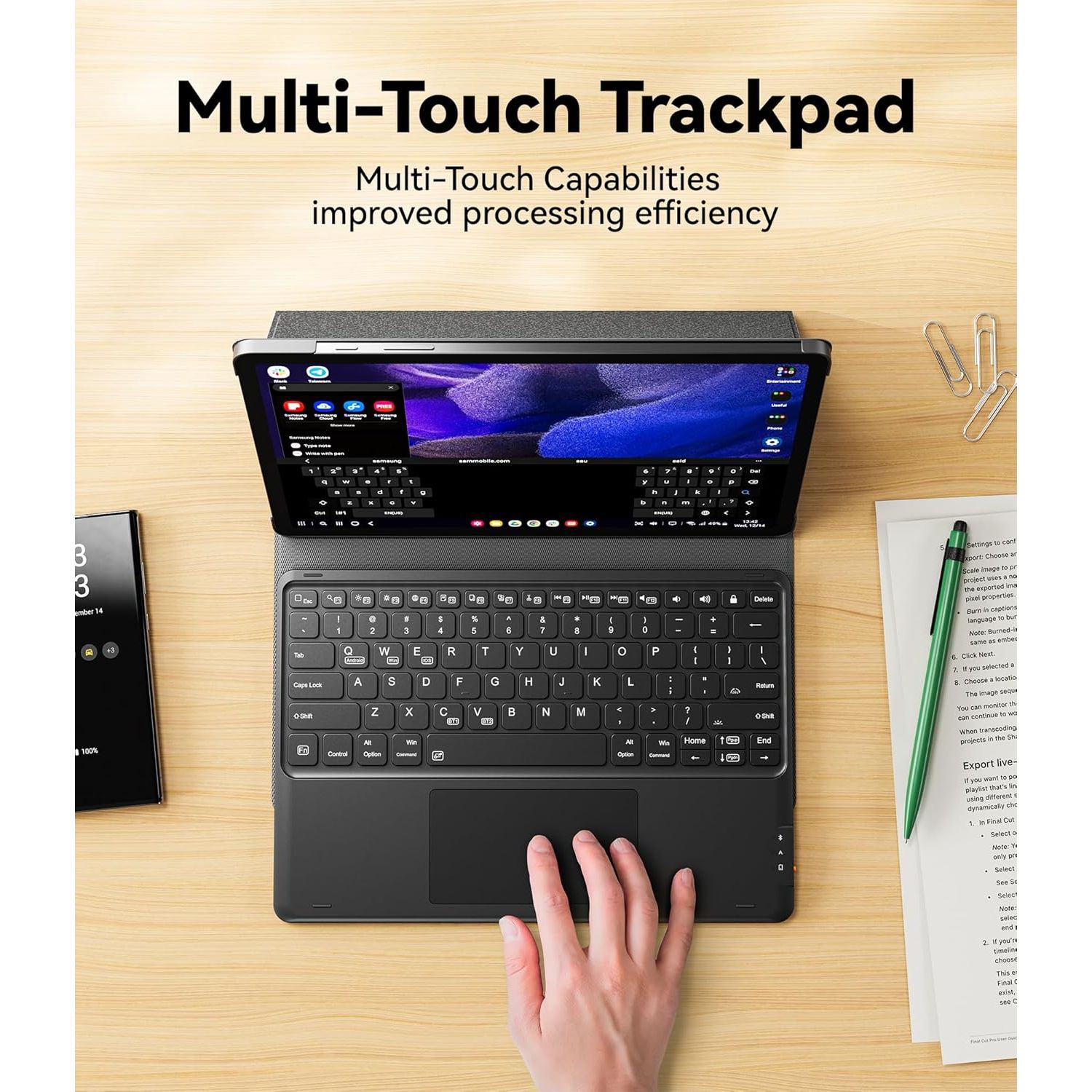 - [Multi-touch Trackpad]: It enhances the functionality of the tab s9+ keyboard case, offering a smooth navigation experience like a laptop. This feature allows you for more precise and intuitive use over the tablet’s on-screen actions.