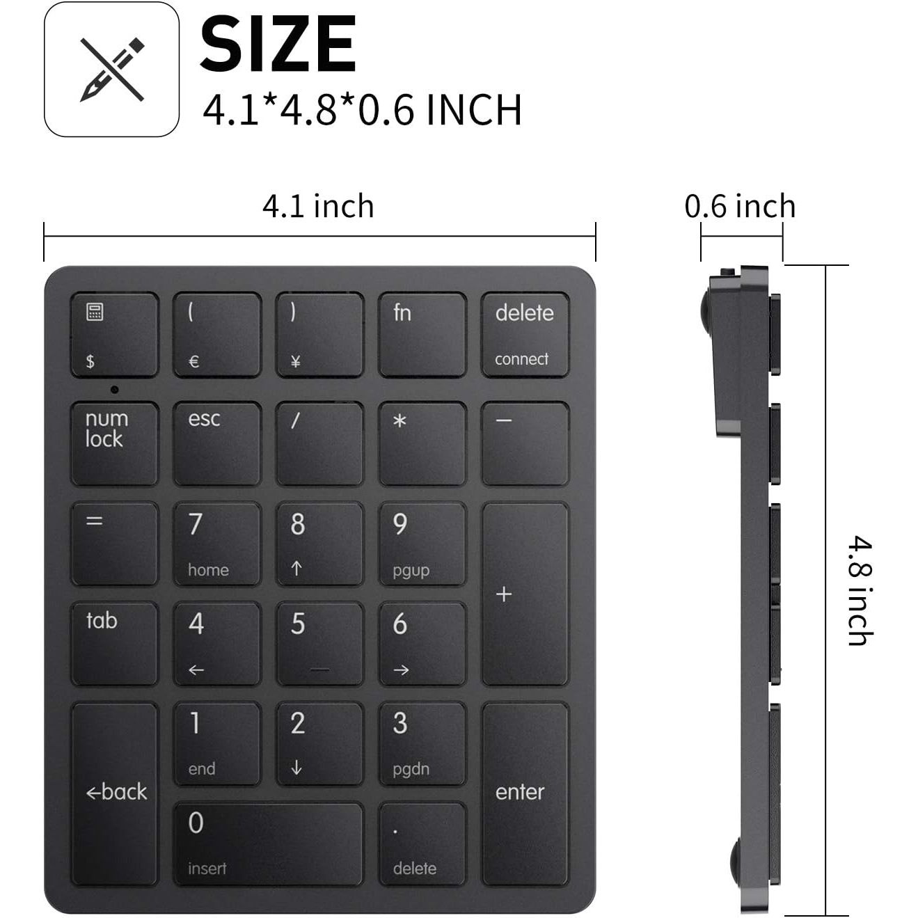 - havit Bluetooth Number Pad Wireless Numeric Keypad Numpad 26 Keys Portable Mini Financial Accounting Rechargeable Numeric Pad for Windows Laptop Desktop, PC, Notebook (Black)