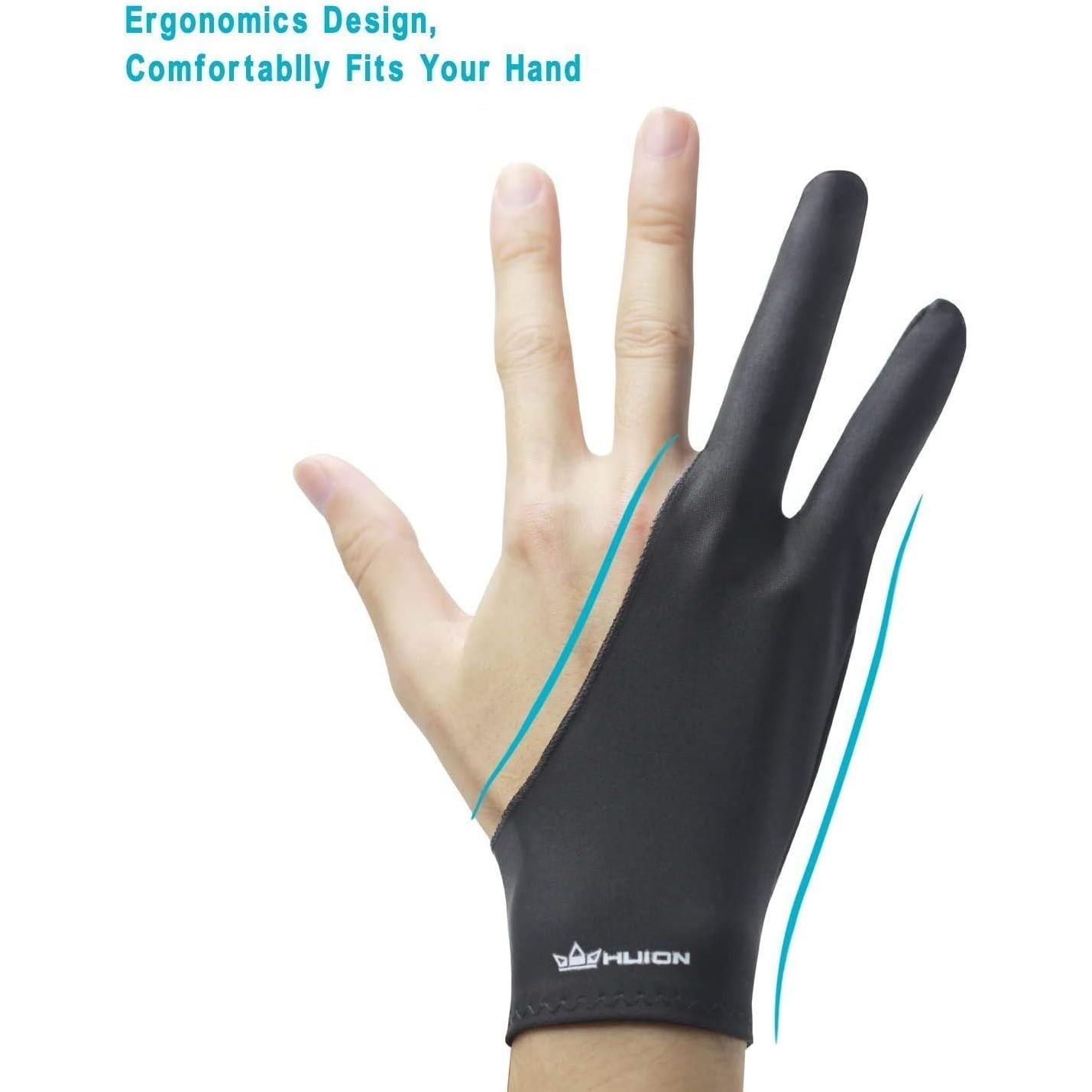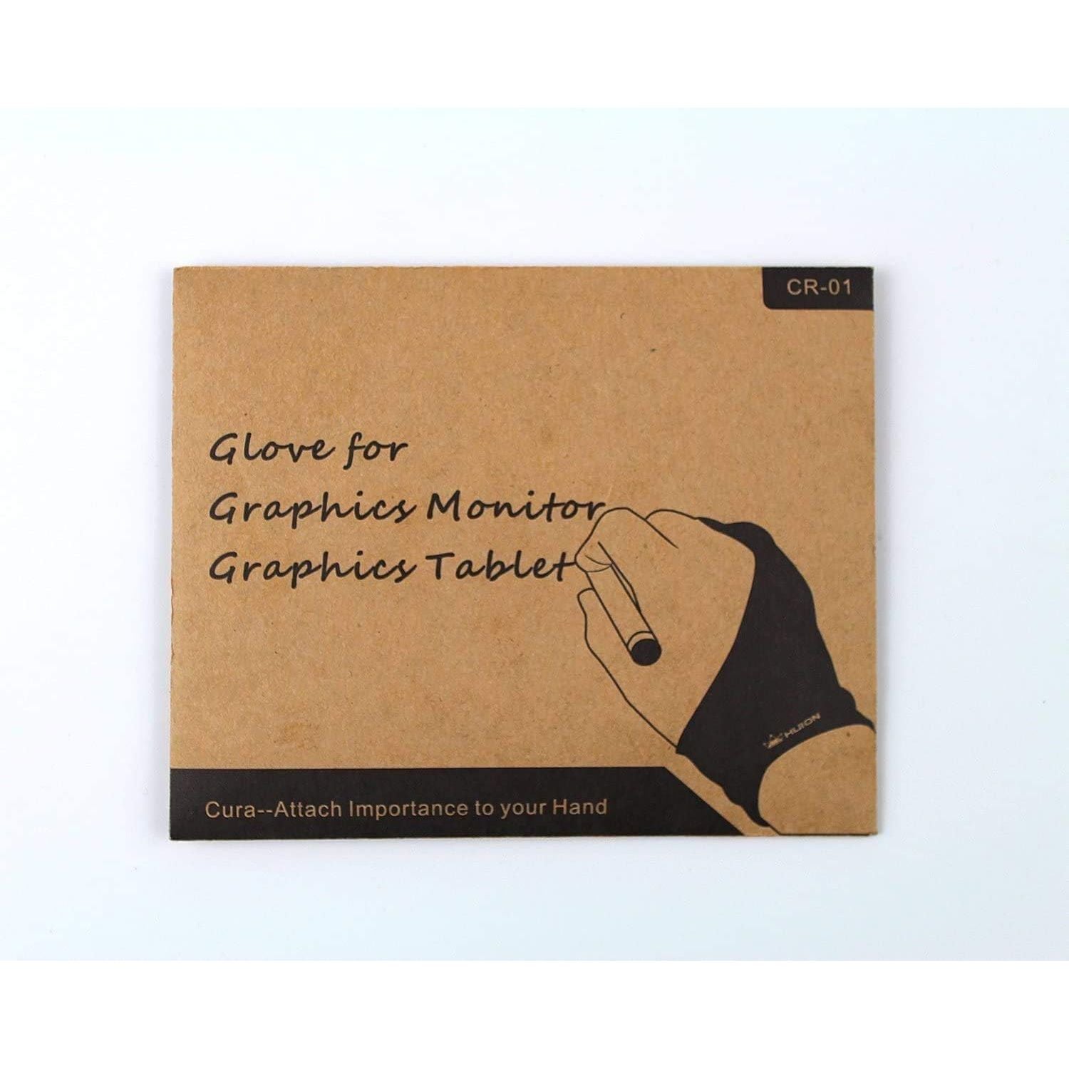 Work for both hands - Huion Artist Glove with two fingers; The package includes one unit of glove which can be used on both hand, free size; 20cm in length, 8cm in width.