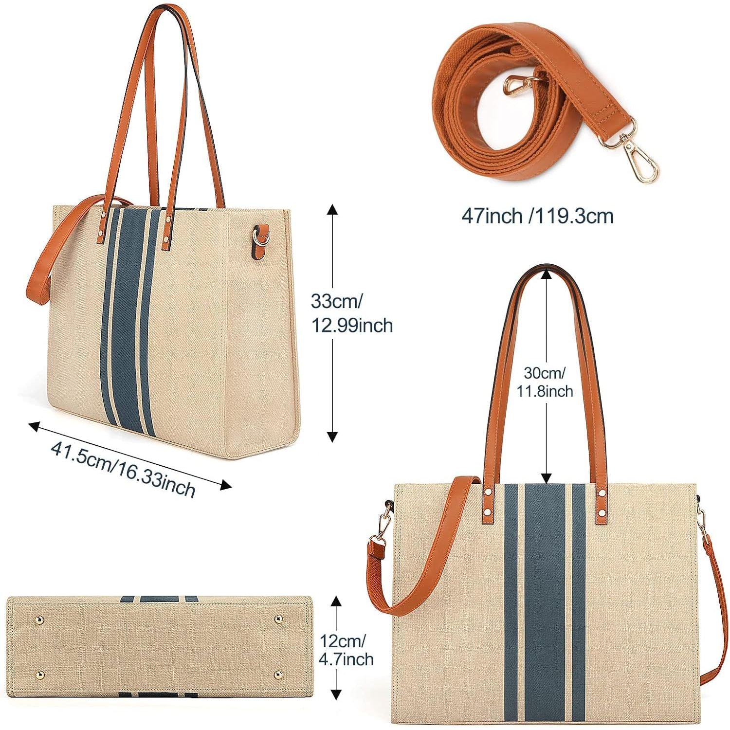 Durable Laptop Bag for Women: Made of premium canvas fabric and polyester lining, soft leather handle, metal buckles match detachable shoulder strap sturdy top handle zipper and professional padded pocket,keep your laptop and essentials safe.4 rivets on the bottom can effectively protect this bag and keep it stand.