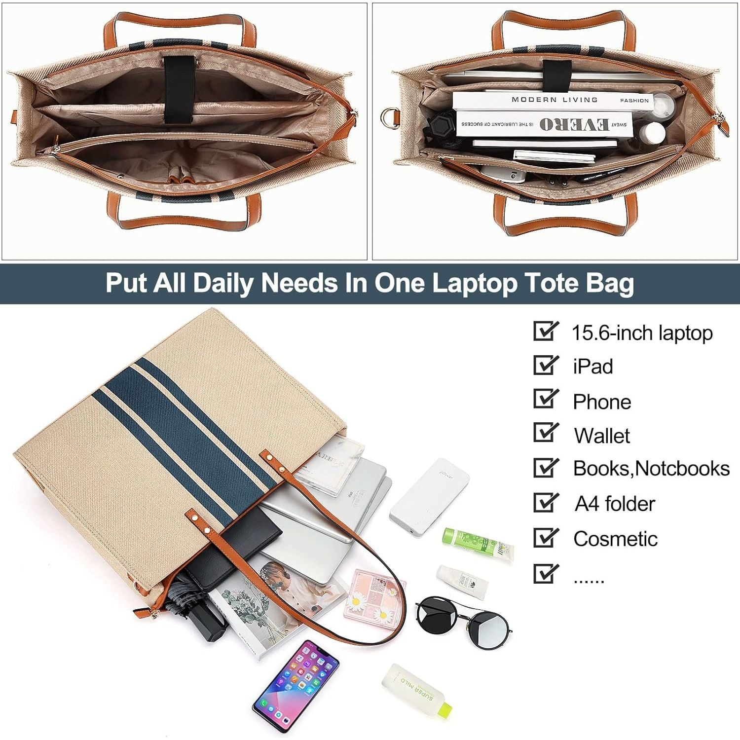 Laptop Tote Bag for Women, Fits 15.6 Inch Laptop Bag, Large Canvas Work Tote Bags for Women, Computer Briefcase Shoulder Bag