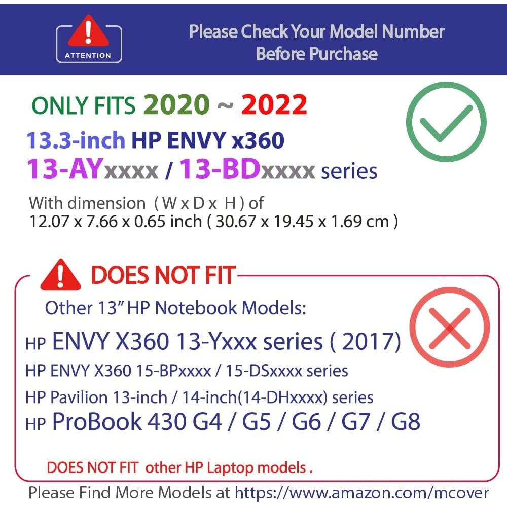 - Designed to perfectly fit the 2020/2021 13.3" HP Envy x360 13 BDxxxx Series (NOT compatible with any other HP models) Convertible laptops (HP-Envy -x360-13-BD Clear) with dimension of 12.07 x 7.66 x 0.65 inch ( 30.67 x 19.45 x 1.69 cm )