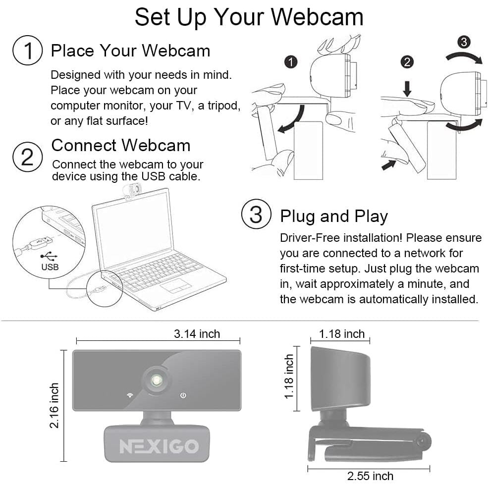 - 【Plug and Play with Optional Software】No additional drivers or software required. You just plug the USB into your computer and it's ready to go! The NexiGo Webcam Software allows you customize all available settings of your webcam, including exposure time, contrast, saturation, white balance, & many more, while using Zoom, Skype, FaceTime, Teams, and other video conference apps. The software supports Windows 7/8/10 and MacOS. Please visit our support site to download.