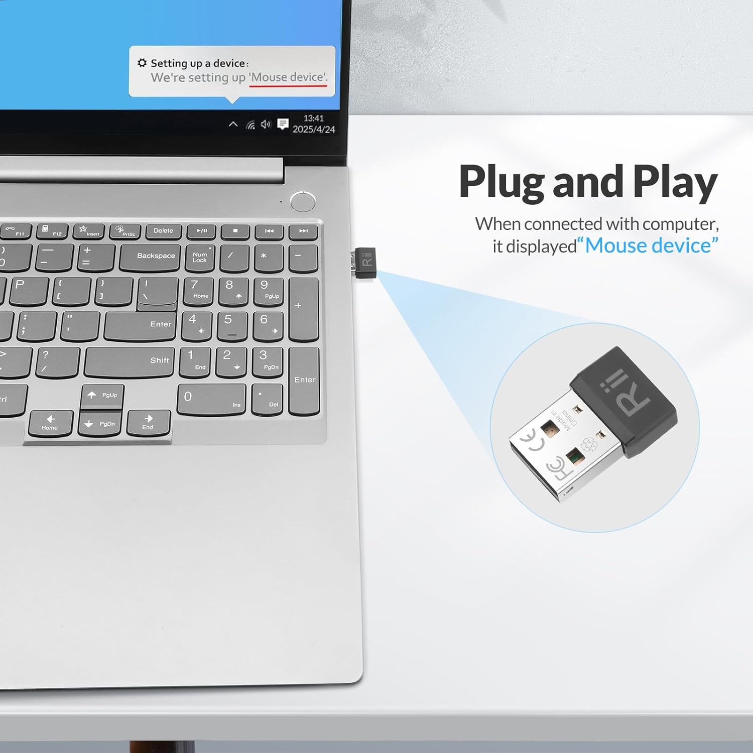 - [Mini-Size]The mouse jiggler is very small, has the same appearance as a USB Receiver. It simulates mouse cursor movement then prevent computer from going into sleep.