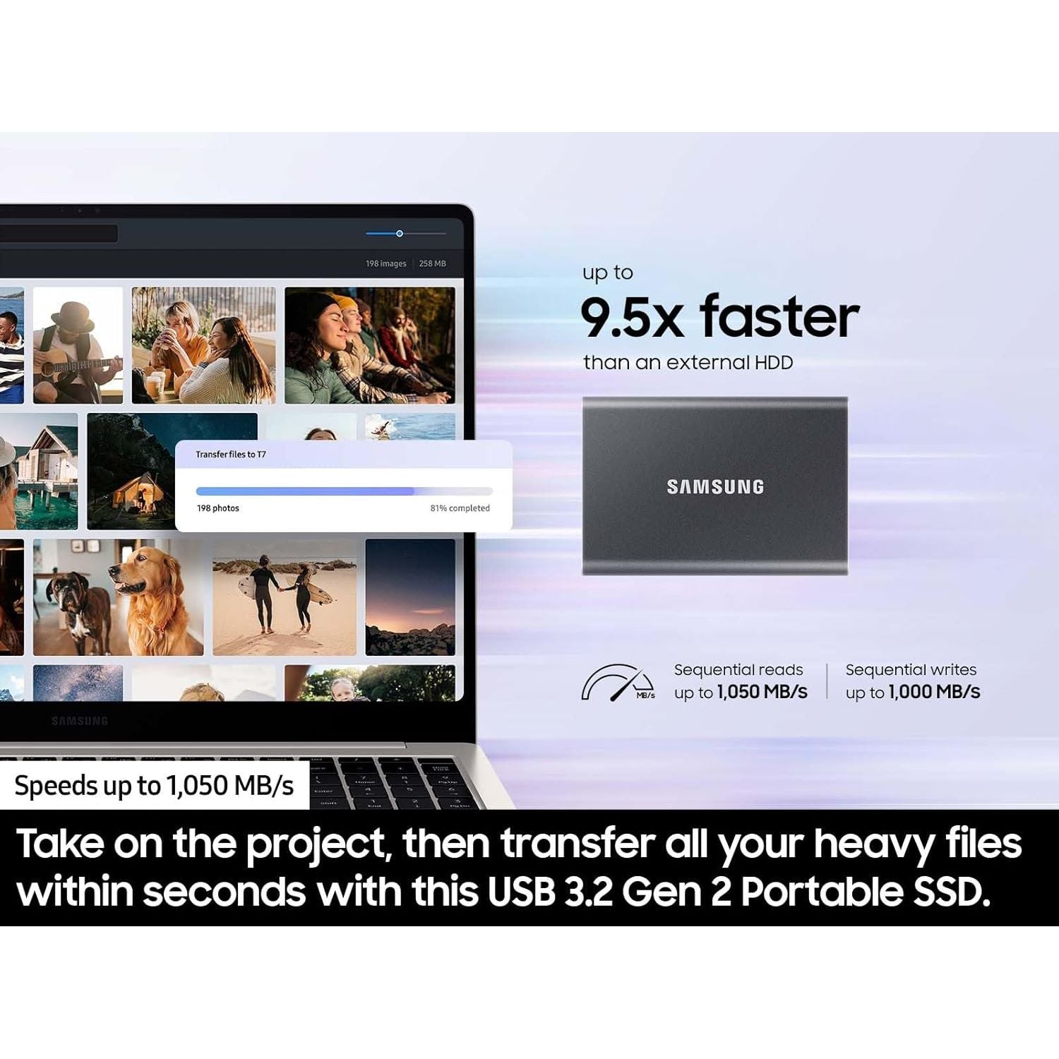 - SAMSUNG T7 Portable SSD, 2TB External Solid State Drive, Speeds Up to 1,050MB/s, USB 3.2 Gen 2, Reliable Storage for Gaming, Students, Professionals, MU-PC2T0T/AM, Gray