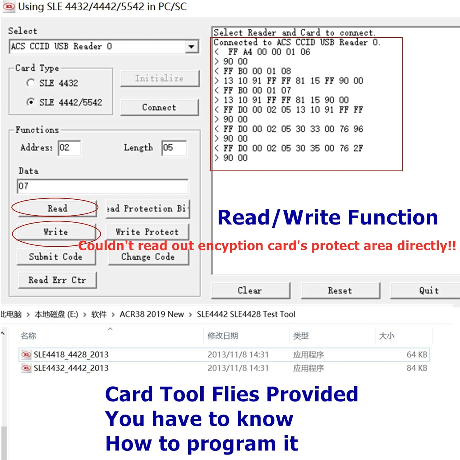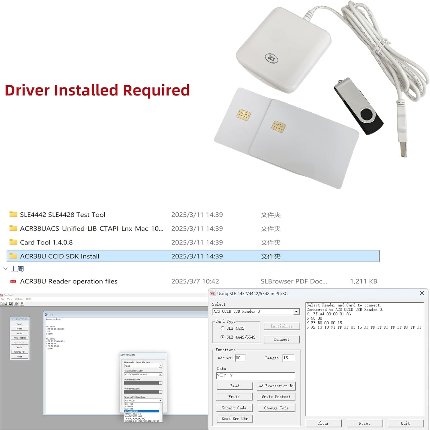 - Typical Applications: Home Banking and Home Shopping,Network access control, Digital signature ,Identification ,Ticketing , Parking and toll collection . Package Included: 1unit *ACR38U-I1 USB Card Reader Writer , 2pcs *SLE4442 chip card , 1pcs * U-disk ( Driver installed Required)