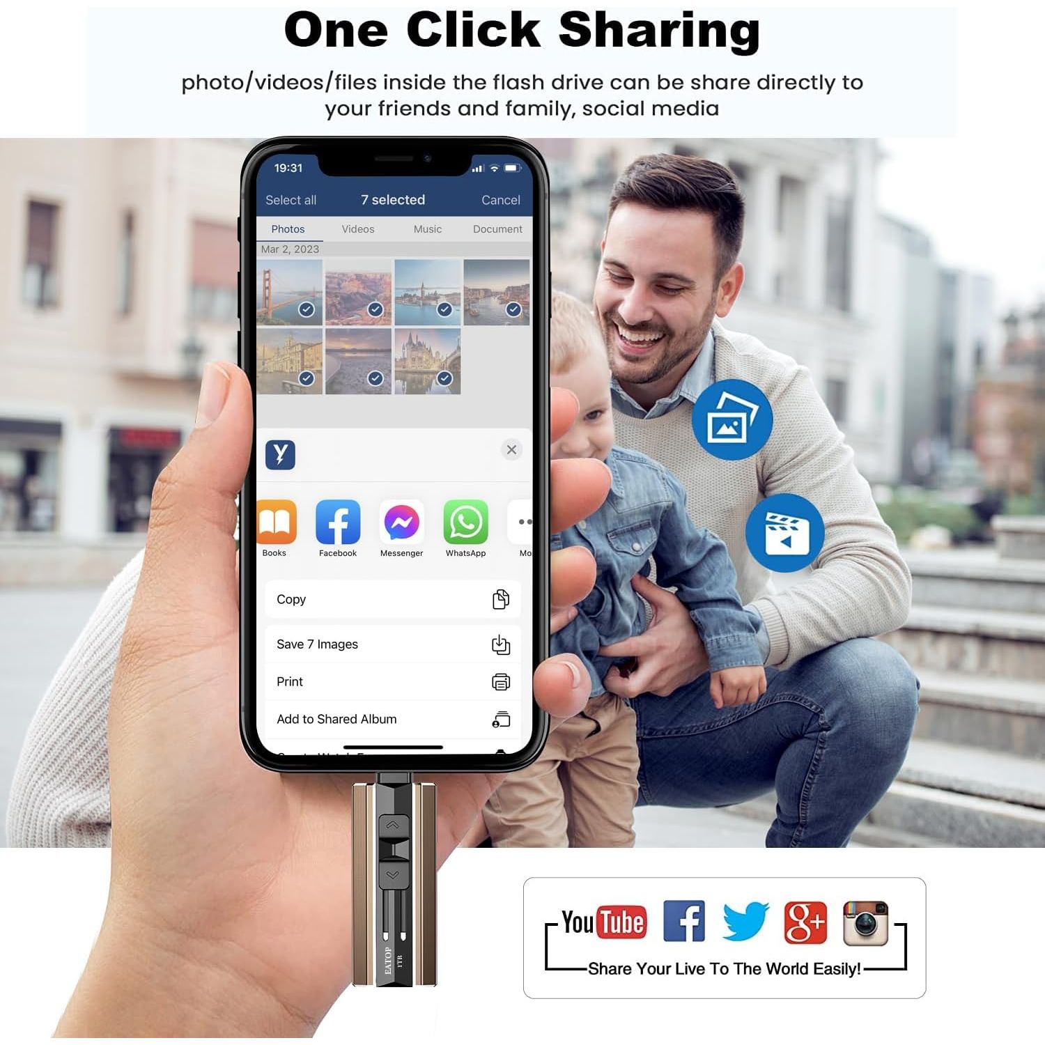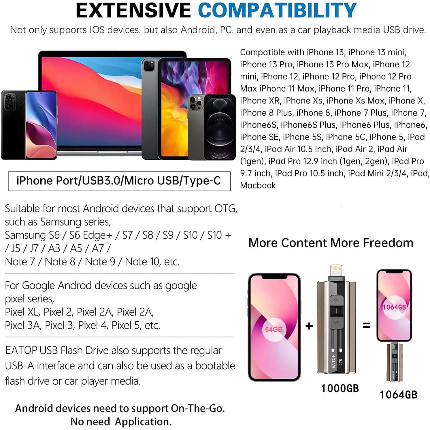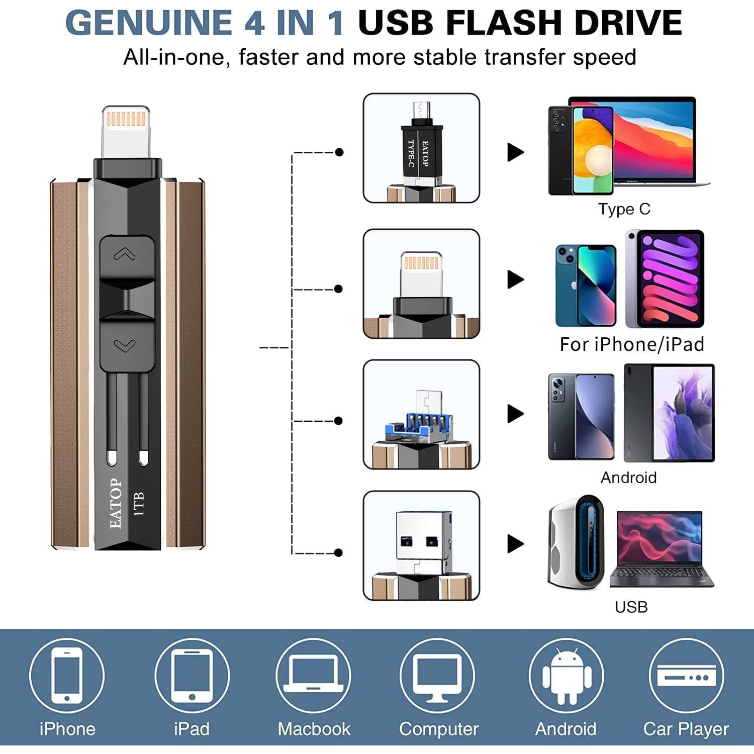 - USB Flash Drive 1TB iPhone Memory Stick Storage for Photos and Videos, iPhone Photo Stick Storage Flash Thumb Drive Compatible with iPhone iPad Android and Computers (Brown)