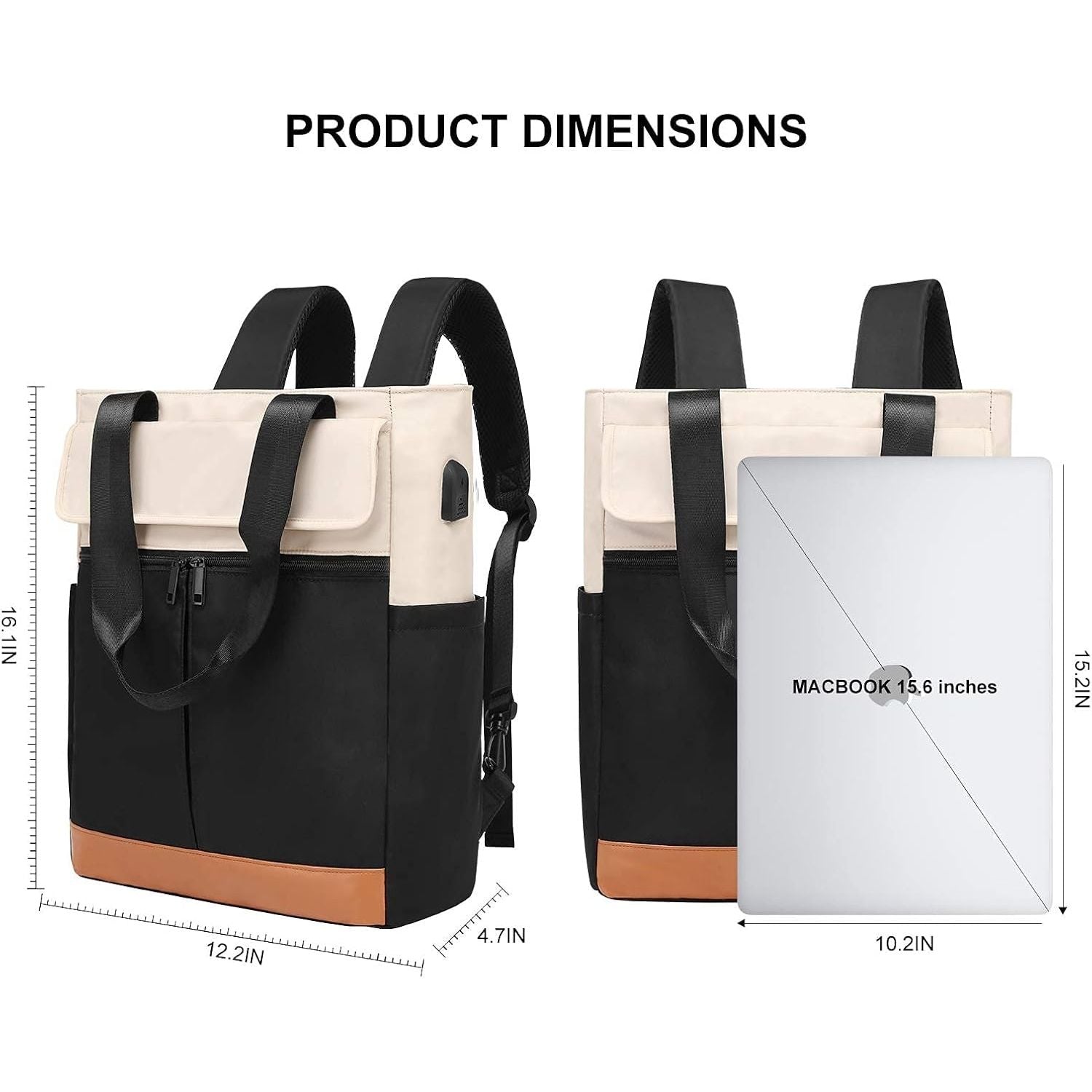 Women's Convertible Daypack Laptop Backpack, Computer Backpack Work Backpack with USB Charging Port
