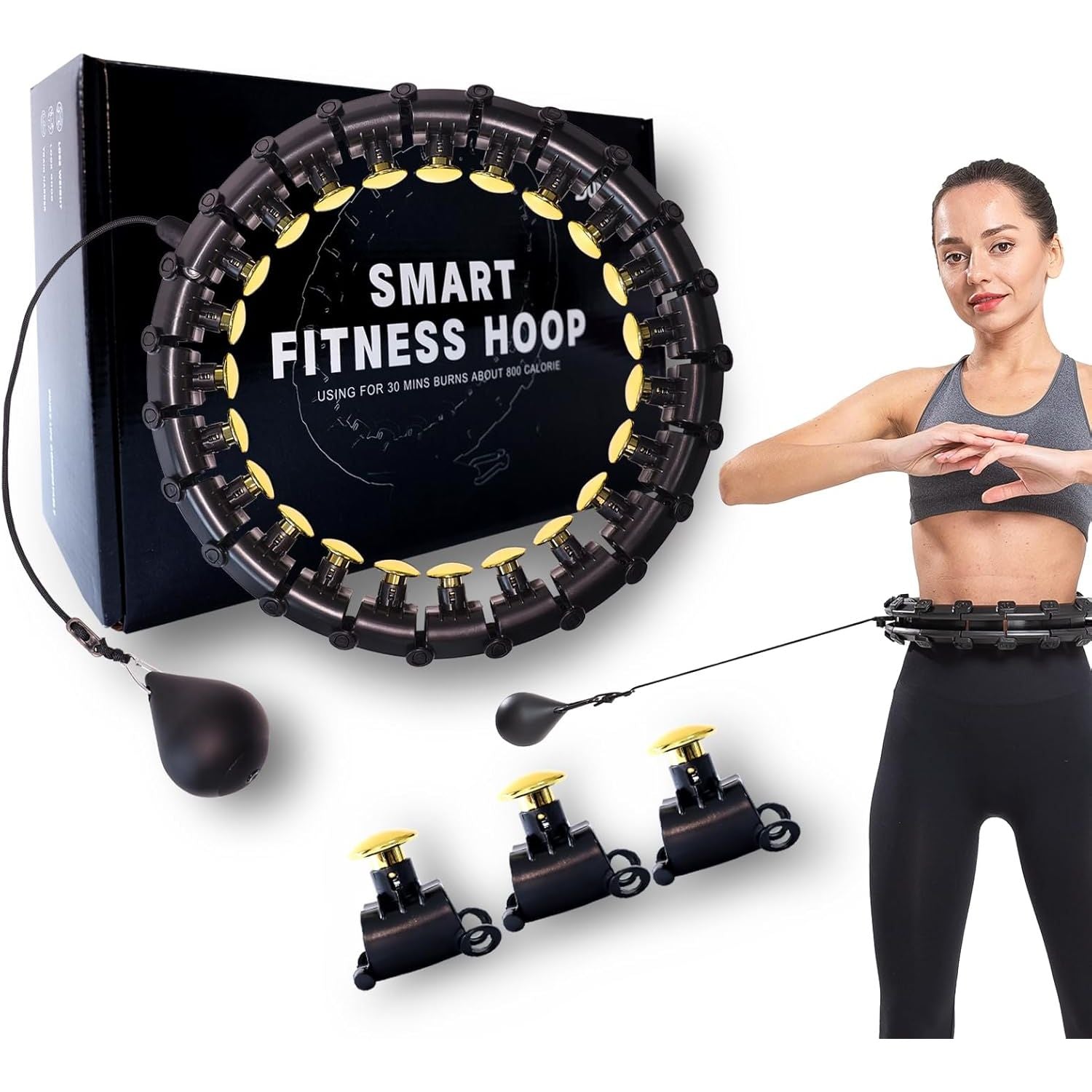 Dumoyi Smart Weighted Fit Hoop for Adults Weight Loss, 24 Detachable Knots Fitness Hoop, 2 in 1 Adomen Fitness Massage Workout Equipment, Great for Exercise and Home Gym