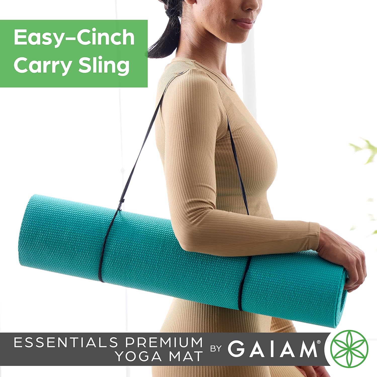 - Gaiam Essentials Thick 2/5" (10mm) and Thin 1/4" (6mm) Yoga & Pilates, Fitness & Exercise Mat with Easy-Cinch Carrier Strap