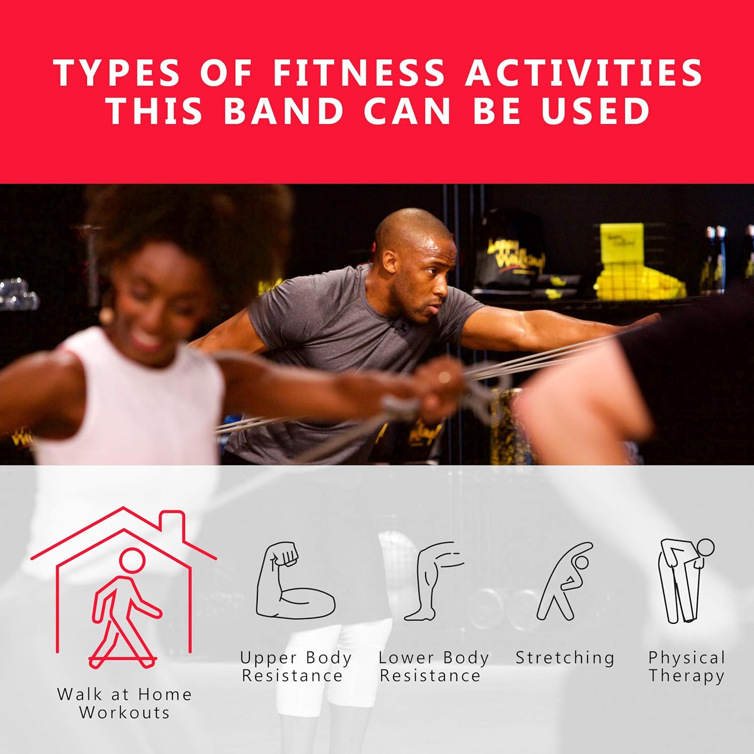 Best for your Walk at Home workouts, Upper Body Resistance, Lower Body Resistance, Stretching and Physical Therapy