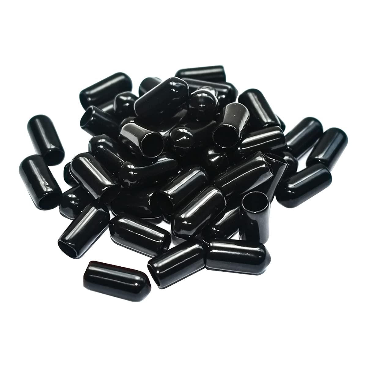 50pcs Vinyl Flexible End Caps, Rubber End Caps, Black Bolt Screw Thread Protector Safety Cover (13/64 Inch 5 mm)