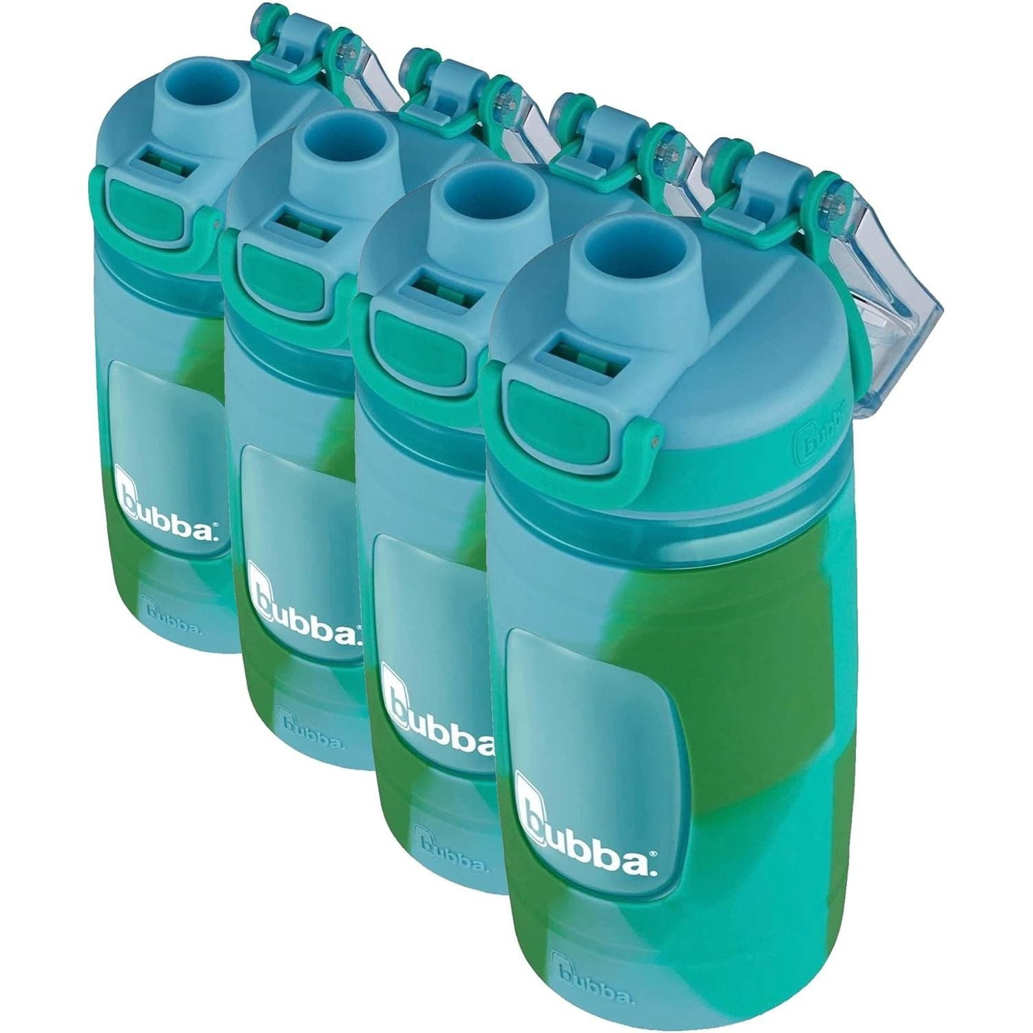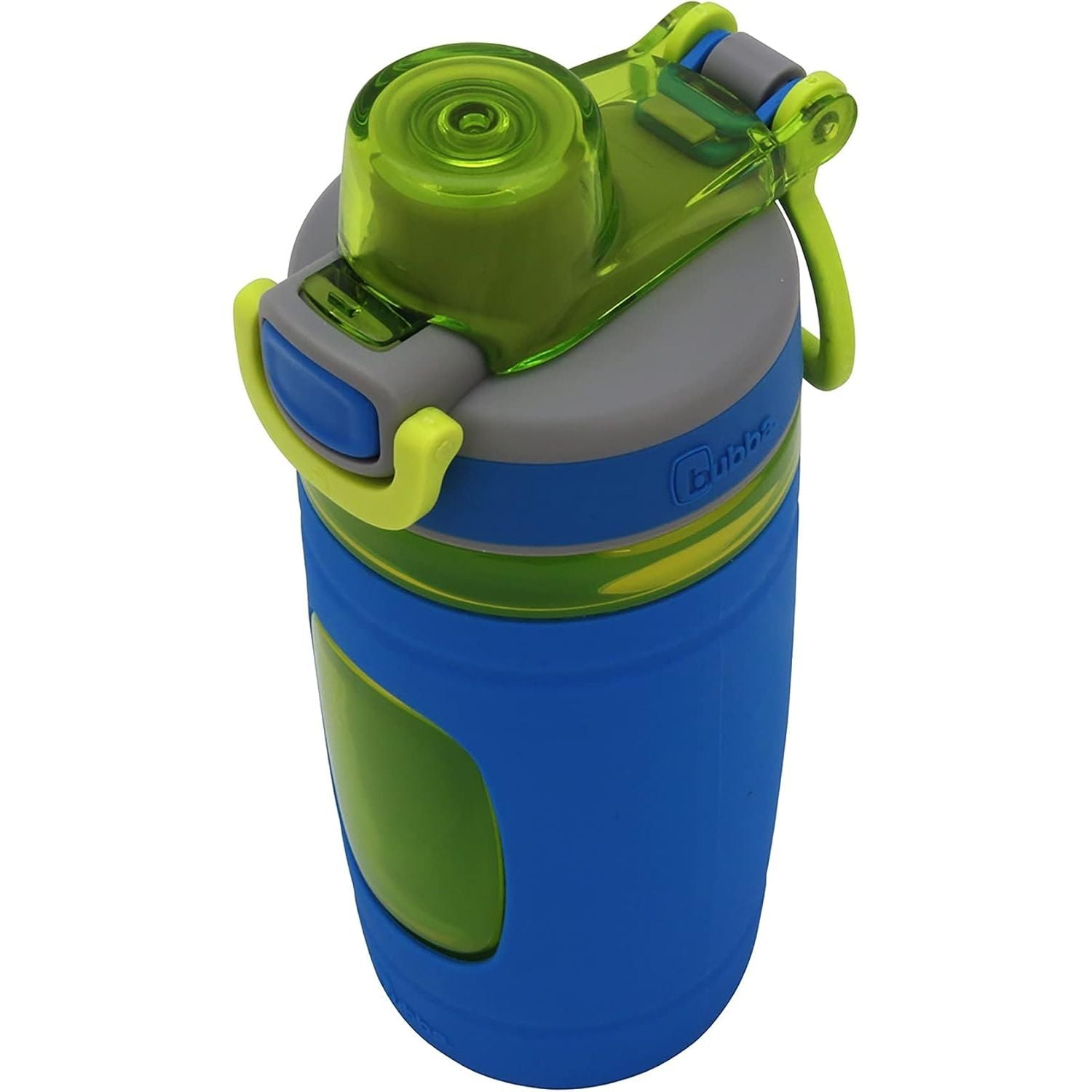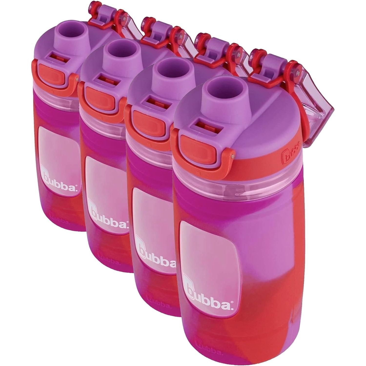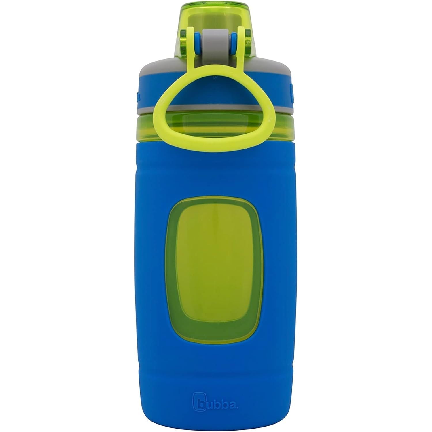 Teach your kids good hydration habits with the bubba Flo kids water bottle with silicone sleeve, 16 oz. It features a leak-proof lid and a handy button lock to prevent accidental openings, keeping the inside of your car safe from spills. With a high-flow Chug lid, kids can quickly Hydrate without missing their turn on the Monkey bars. A built-in spout cover keeps out dirt . This sturdy water bottle is made of impact-, stain-resistant BPA-free plastic. In addition to keeping drinks cold longer, the easy-to-grip silicone sleeve reduces condensation and includes a see-through window so you can track liquid consumption. The sleeve comes off, so throw lid and body onto the top rack of your dishwasher for no-fuss cleaning. Rest assured, your bubba is guaranteed for life. For ages 3 and up.