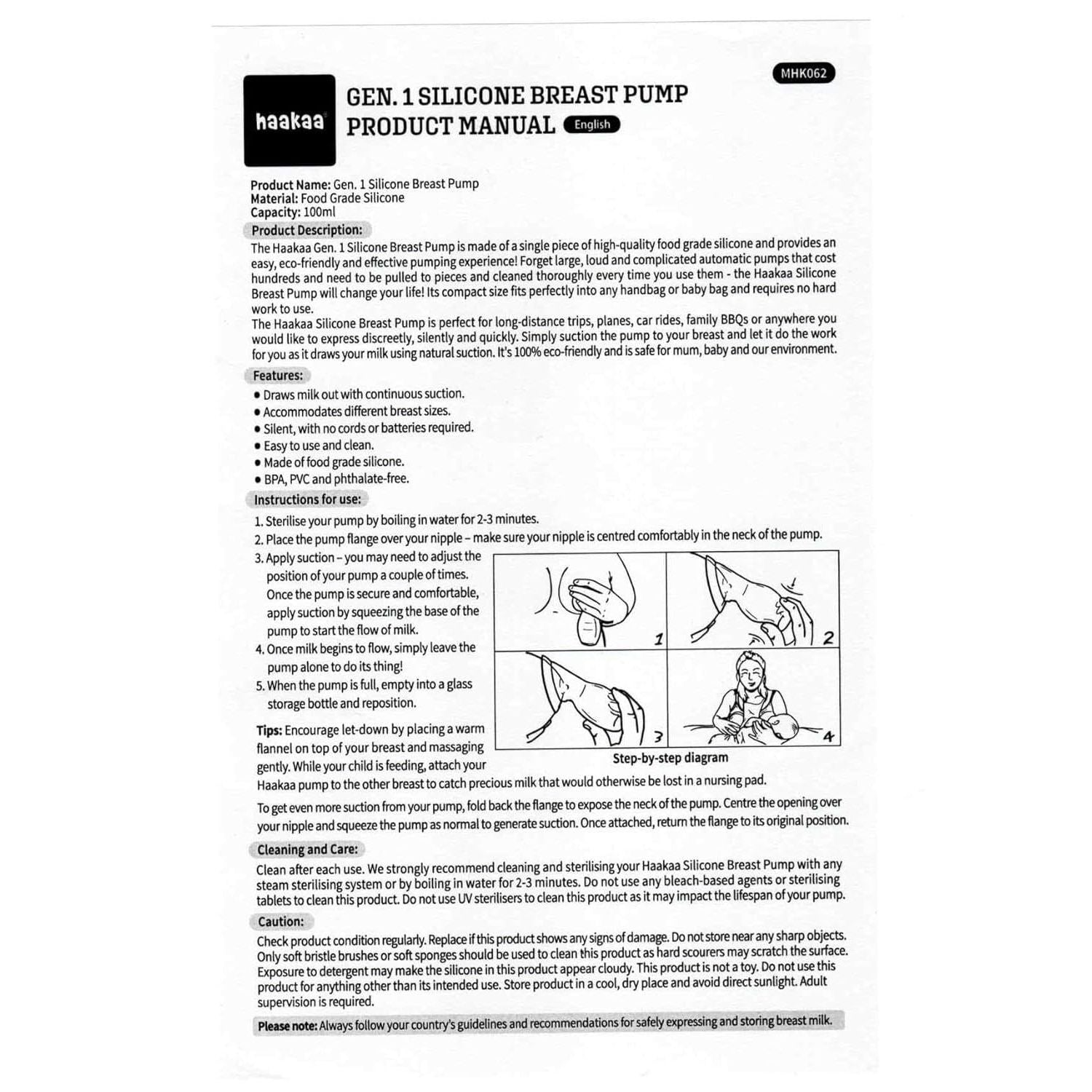 | additional product features | Lightweight, portable and the perfect tool for baby bags, Made from premium food grade silicone, Match with haakaa Flower Stoppers and Silicone Breast Pump Cap, Recommended by nursing mums, magazines, celebrities, doulas and lactation consultants, New Zealand Brand |