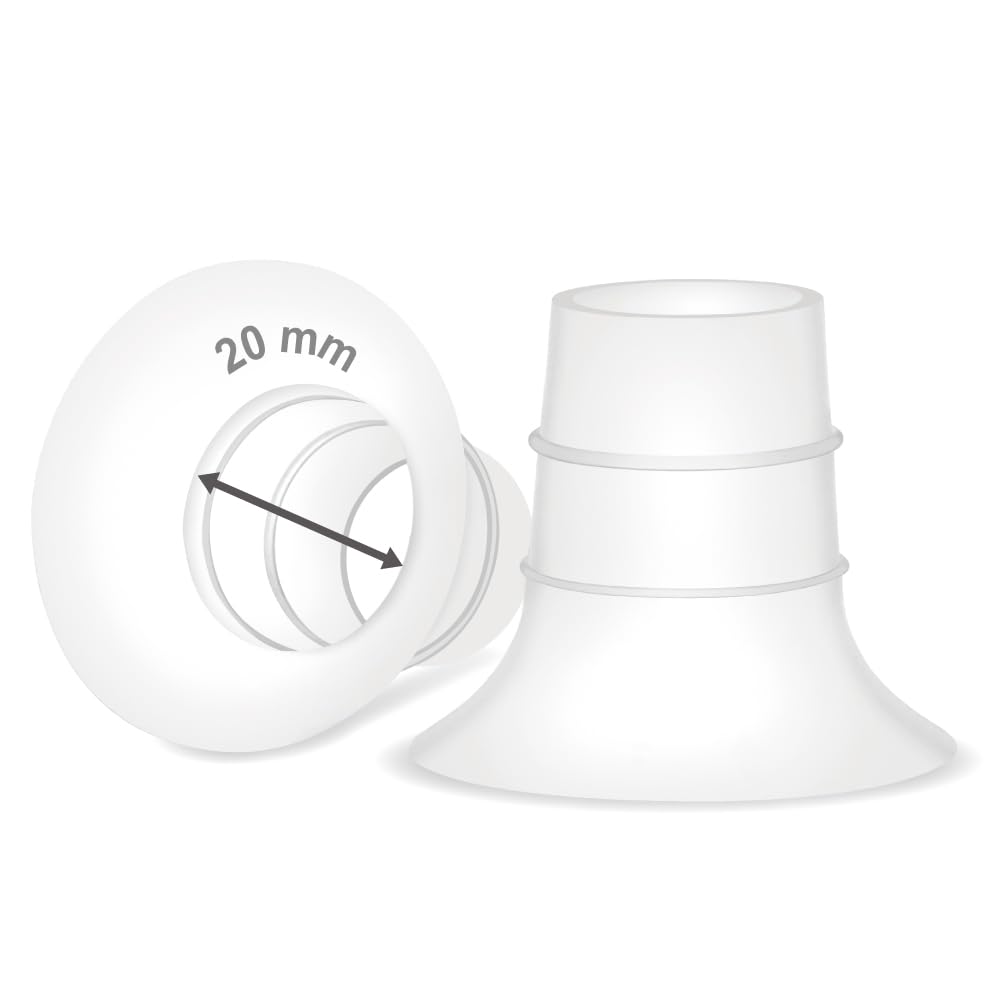 Easily and quickly reduce large-sized flange to customized one. Personalized size available ranged from 10 mm to 24 mm* in small increments for pumping comforts and performance.
