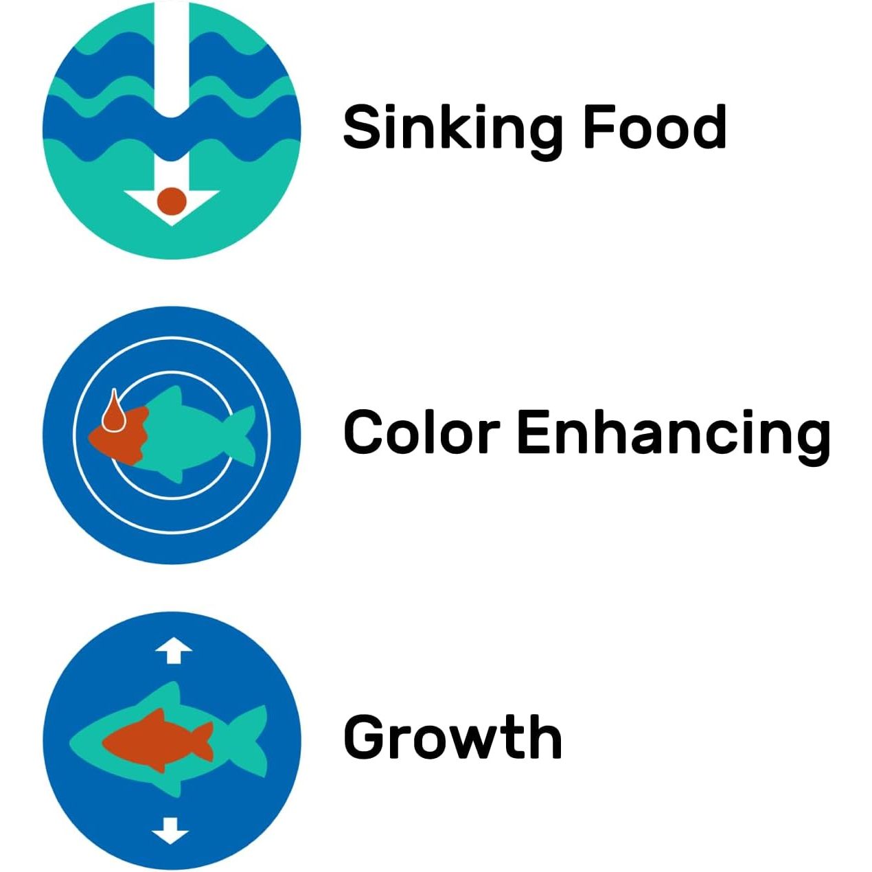 - High levels of vegetable matter that bottom feeders prefer, along with highly nutritious spirulina, silkworm and krill