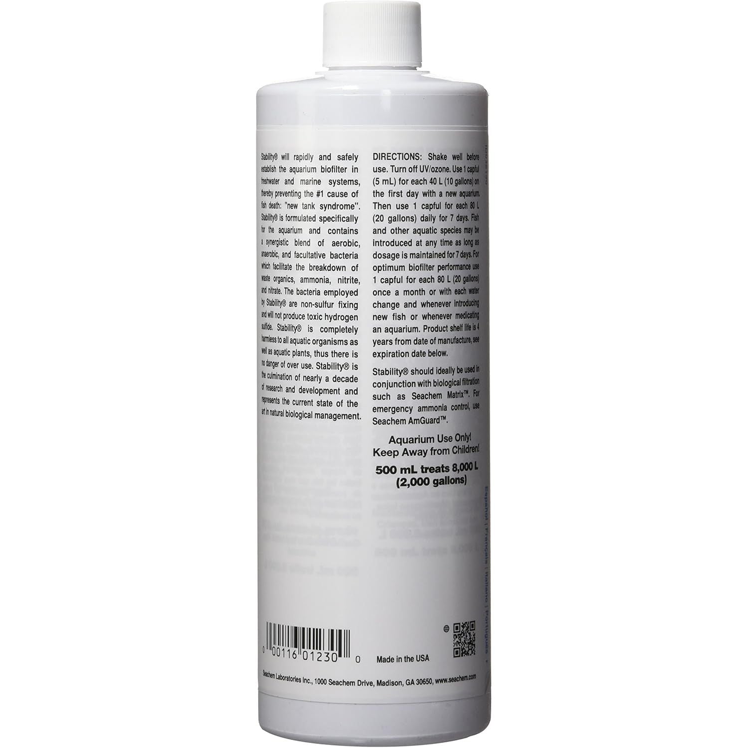 - TREATMENT: Stability is formulated specifically for the aquarium and contains a synergistic blend of aerobic, anaerobic, and facultative bacteria which facilitate the breakdown of waste organics, ammonia, nitrite, and nitrate.