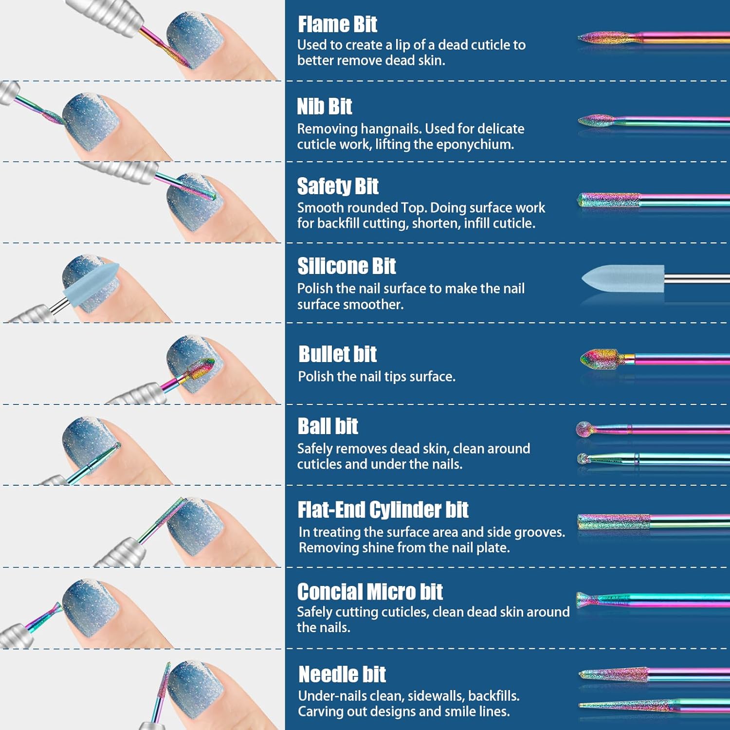 - PREMIUM MATERIAL: Adopt the highest precision standards diamond with superior strength, sharpness, and durability. You can be sure that these cuticle drill nail bits will last for a long time