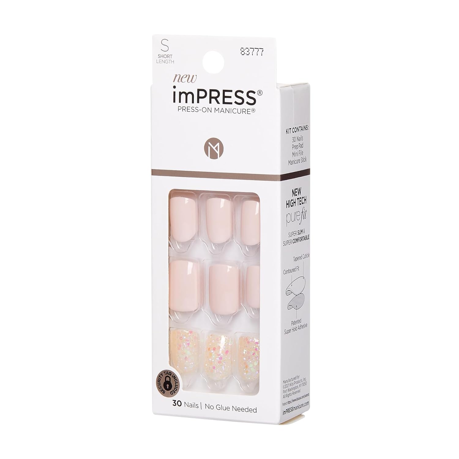 - Press On & Go: The new generation manicure is here! Now with PureFit Technology, imPRESS is slimmer and super comfortable, resulting in the most natural looking fit. Get a salon quality mani in minutes; 30 Nails, Prep Pad, Mini File, and Cuticle Stick