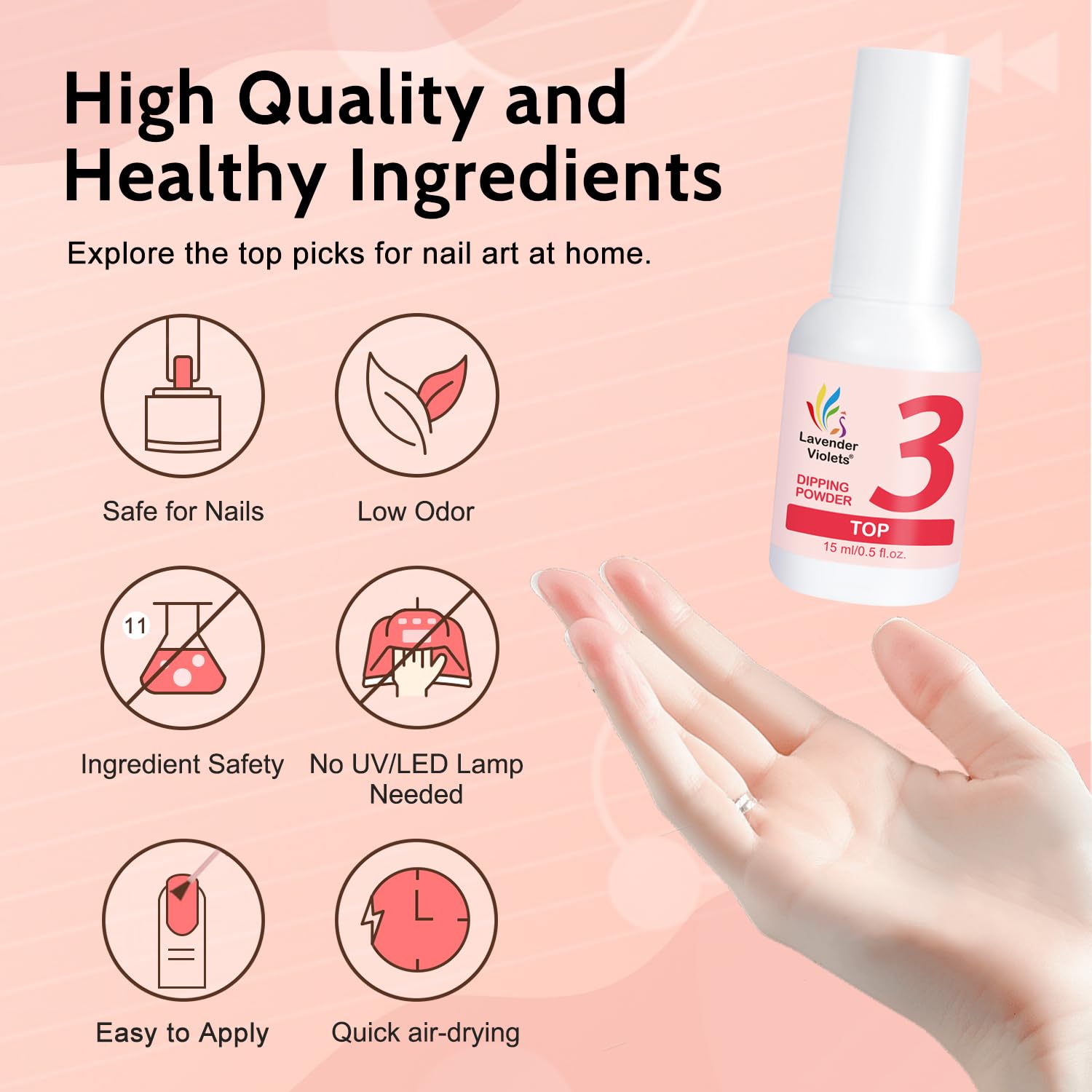 - Durable: Dip powder gel is resistant to chipping and cracking, breathable with no damage to the nails beds, which is shiny for about 3 weeks even without a led nail lamp curing.