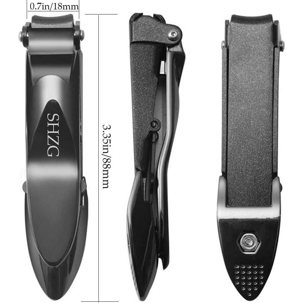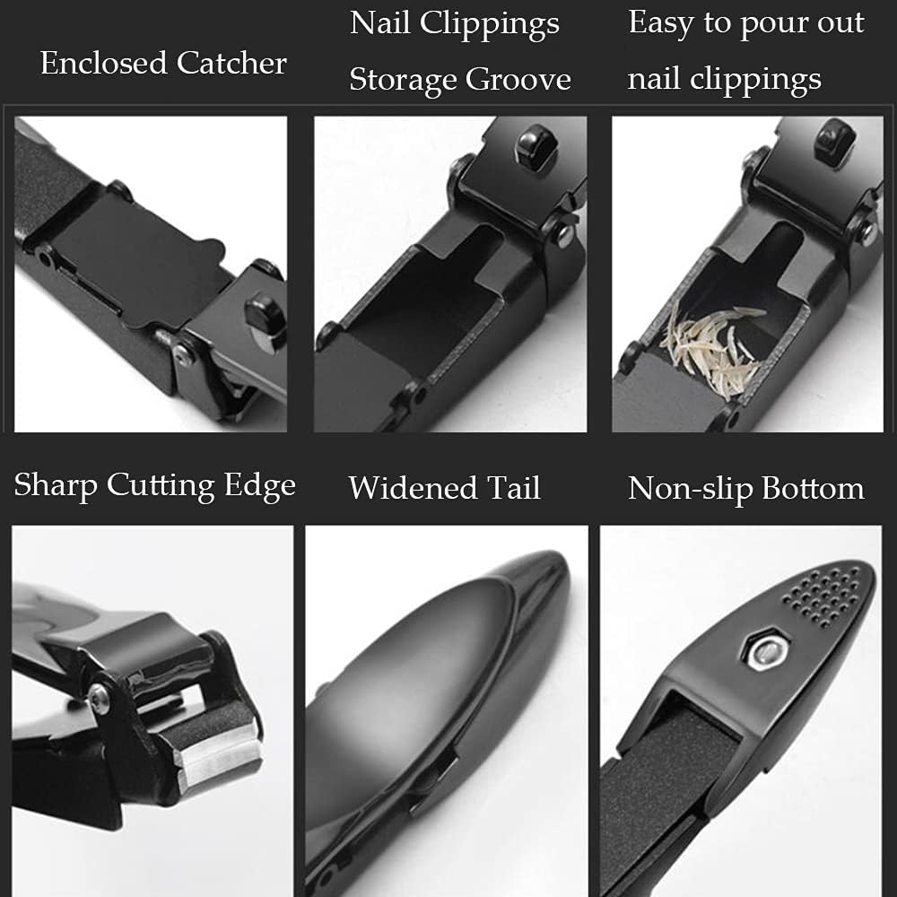 Nail Clipper with Catcher, No Mess Anti Splash Fingernail Toenail Clipper, Sharp and Heavy Duty Nail Cutter for Men and Women (Black)