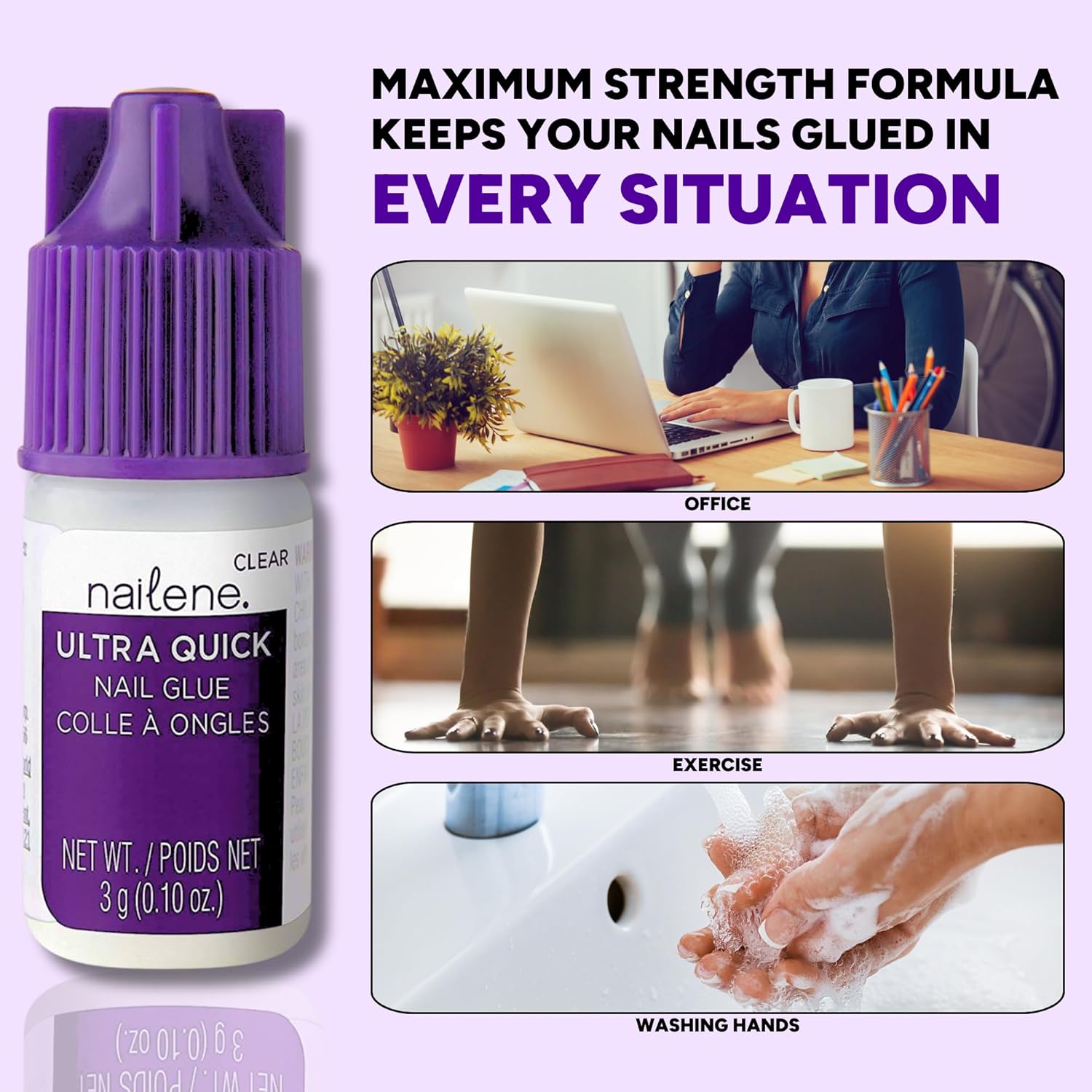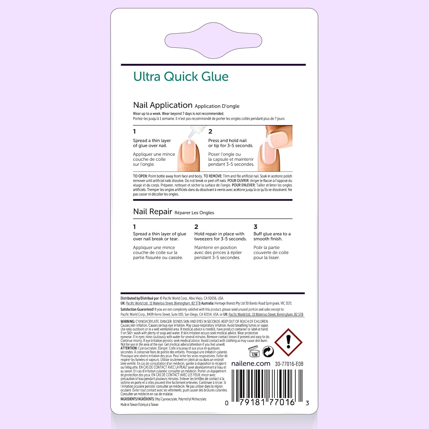 - DURABLE & FAST SETTING NAIL GLUE – Nailene Ultra Quick Nail Glue instantly bonds artificial & natural nails with superior holding power. It's ideal for artificial nail application as well as nail repair.
