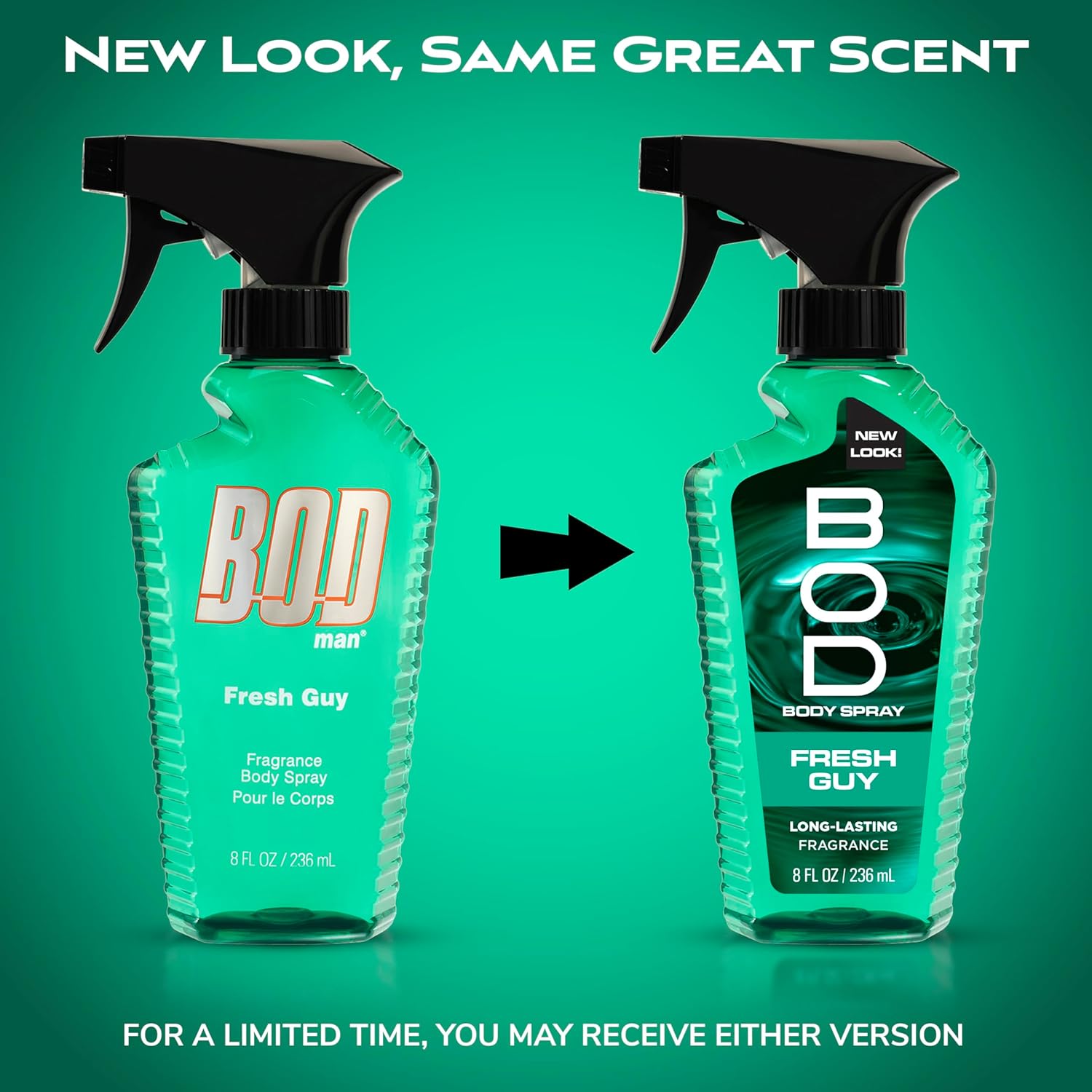 The BOD Man Fresh Guy Fragrance Body Spray exudes personality and charm that matches any kind of vibrant persona. The unforgettable scent includes notes of green apple, watermelon, and lavender. To finish, we based this fragrance on a bed of amber, sandalwood, and musk. Distinctly for men. Distinctly for you.