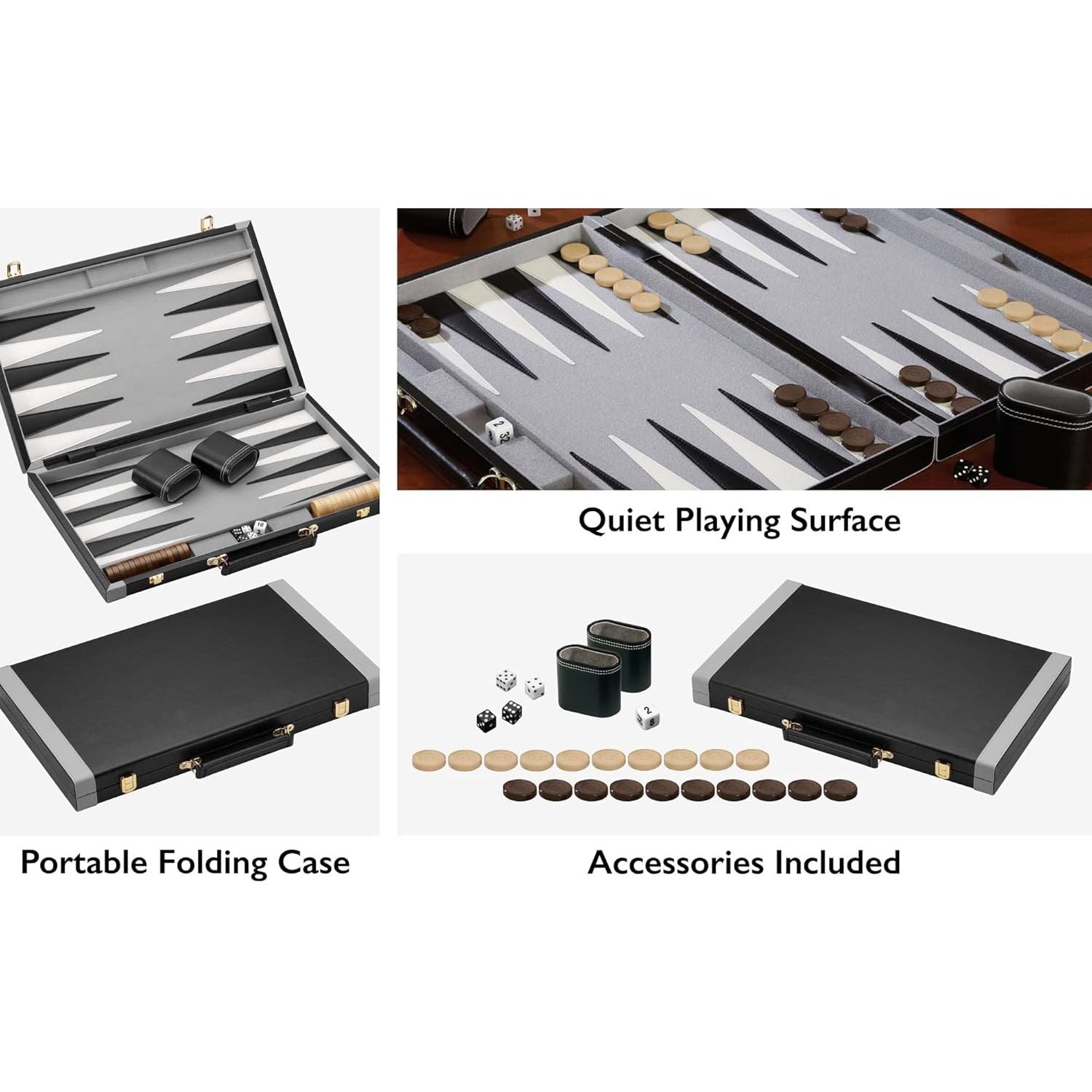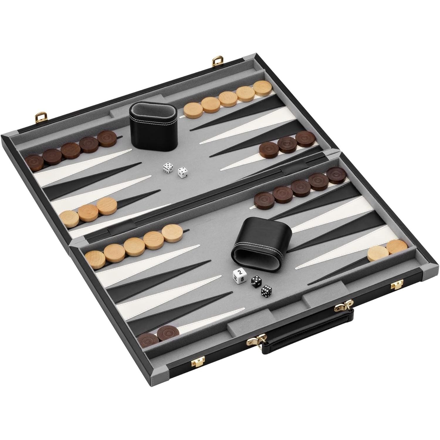 - Accessories Included - Includes wooden playing pieces, two leatherette dice cups, a double cube, two sets of dice, and playing instructions