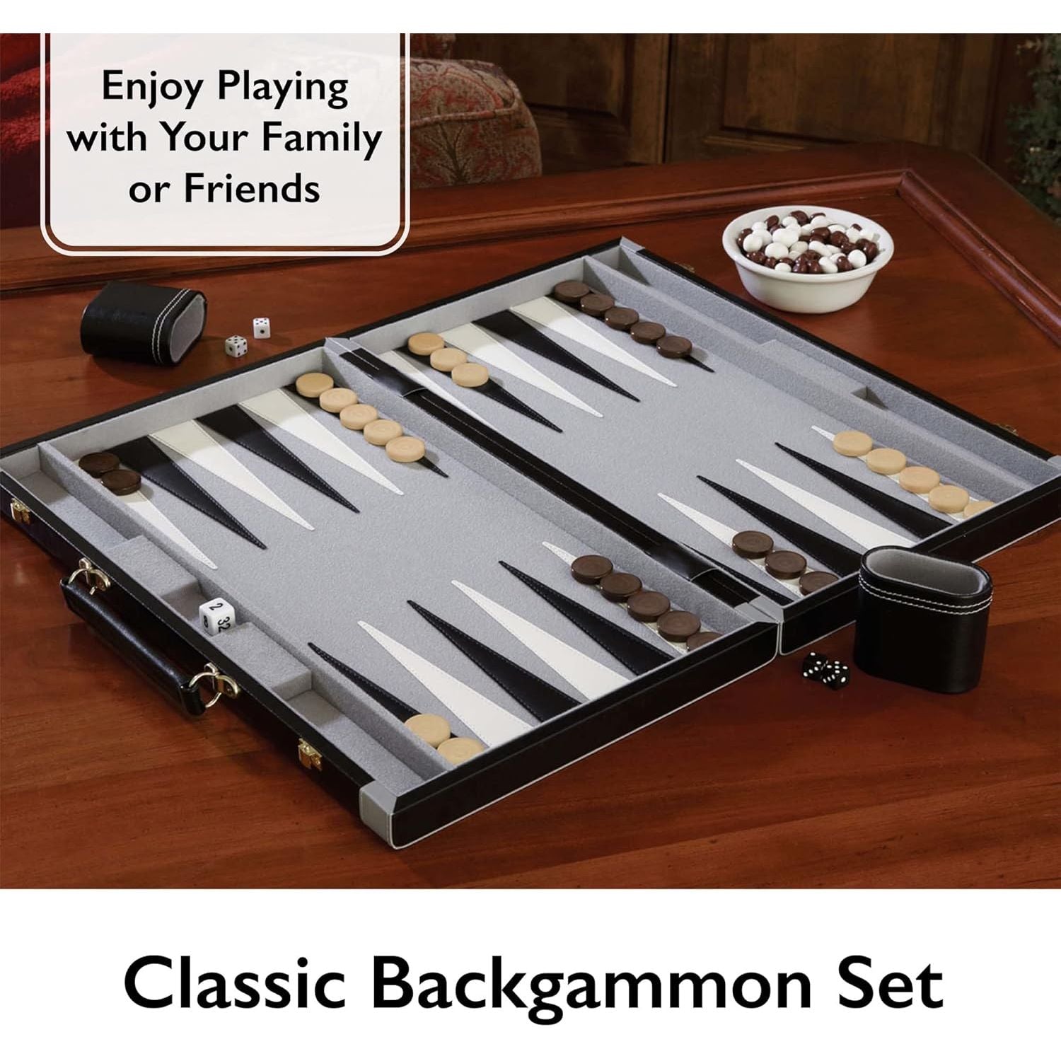 - Traditional Game - Enjoy playing with family or friends with this traditional black and white backgammon set