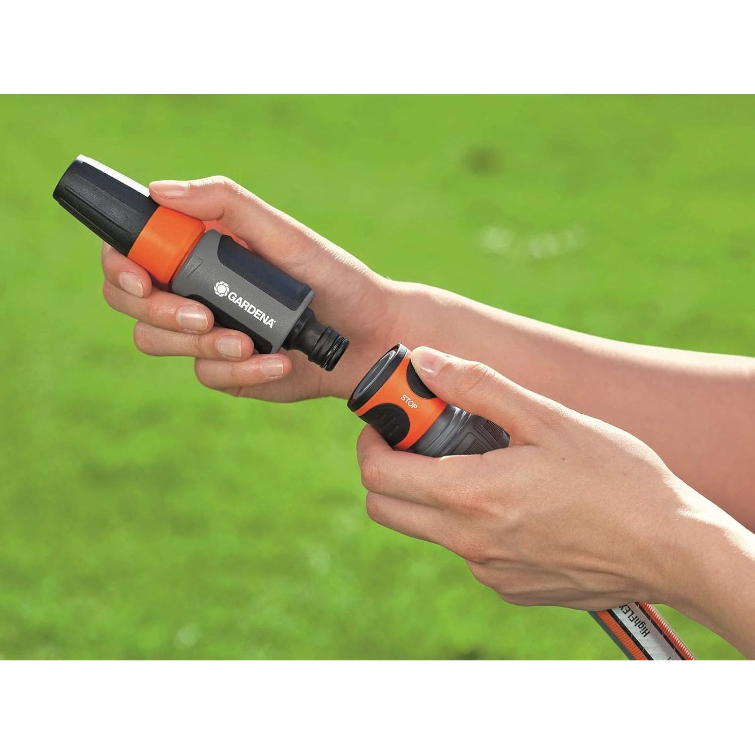 Product Description With this set, you have all original GARDENA system fittings & a cleaning nozzle for immediate use of your hose. Set Contains: 1 x System Basic Set