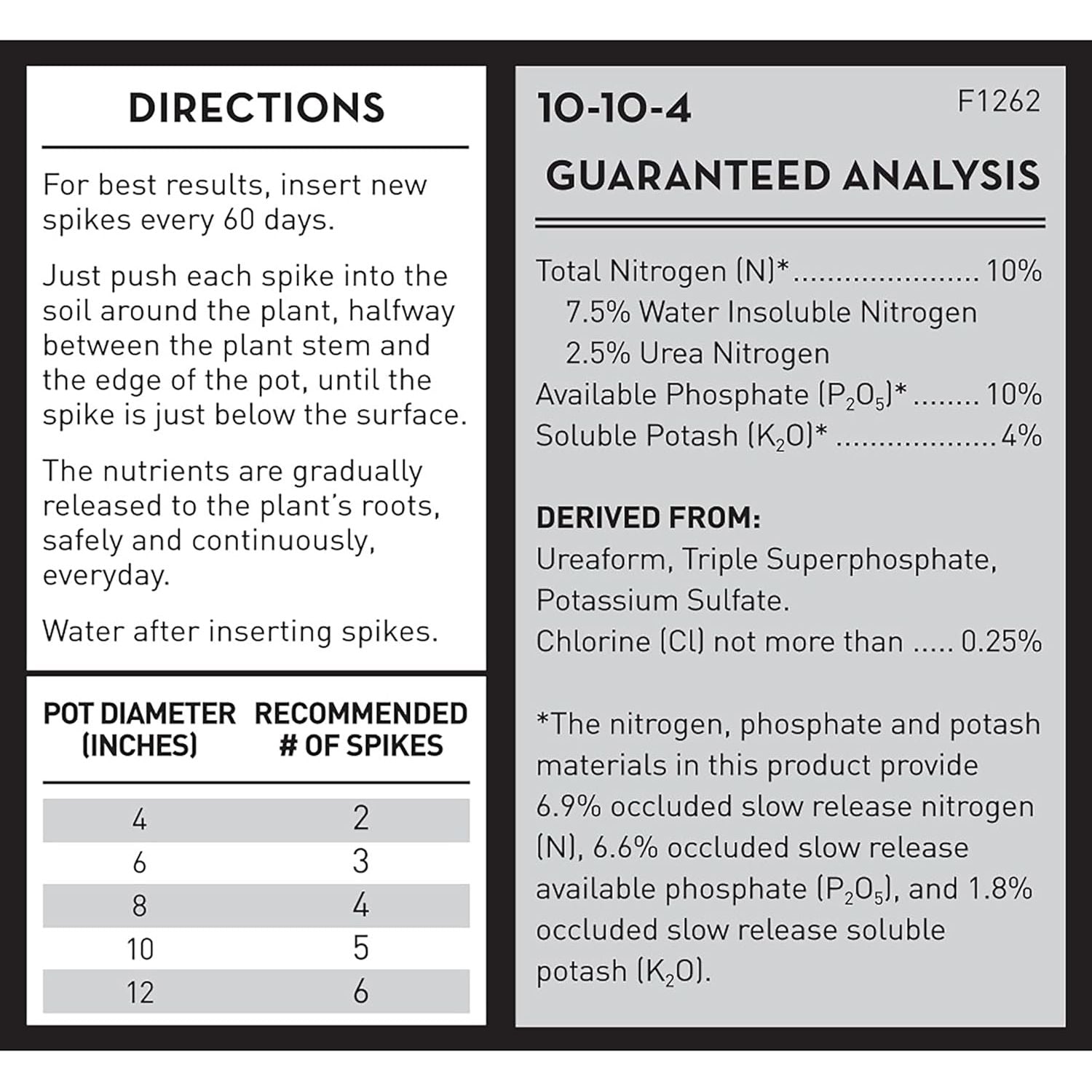 - Application is simple and slow release fertilizer spikes should be replaced every 60 days