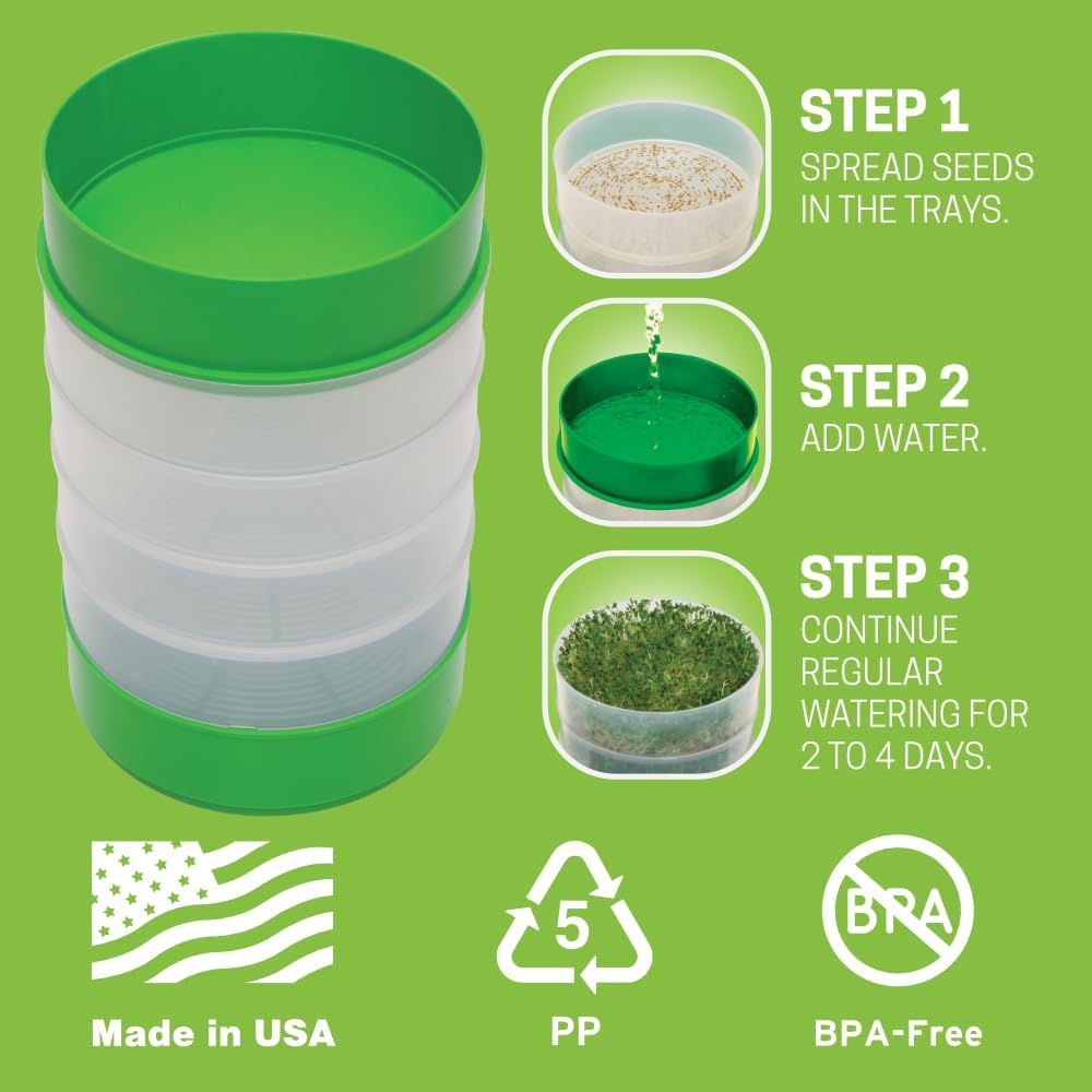 - KITCHEN CROP Deluxe Seed Sprouter with 4 Growing Trays and 1 Seed Packets, (Alfalfa Seeds) Easily Grow Sprouts Indoors for a Healthy Lifestyle