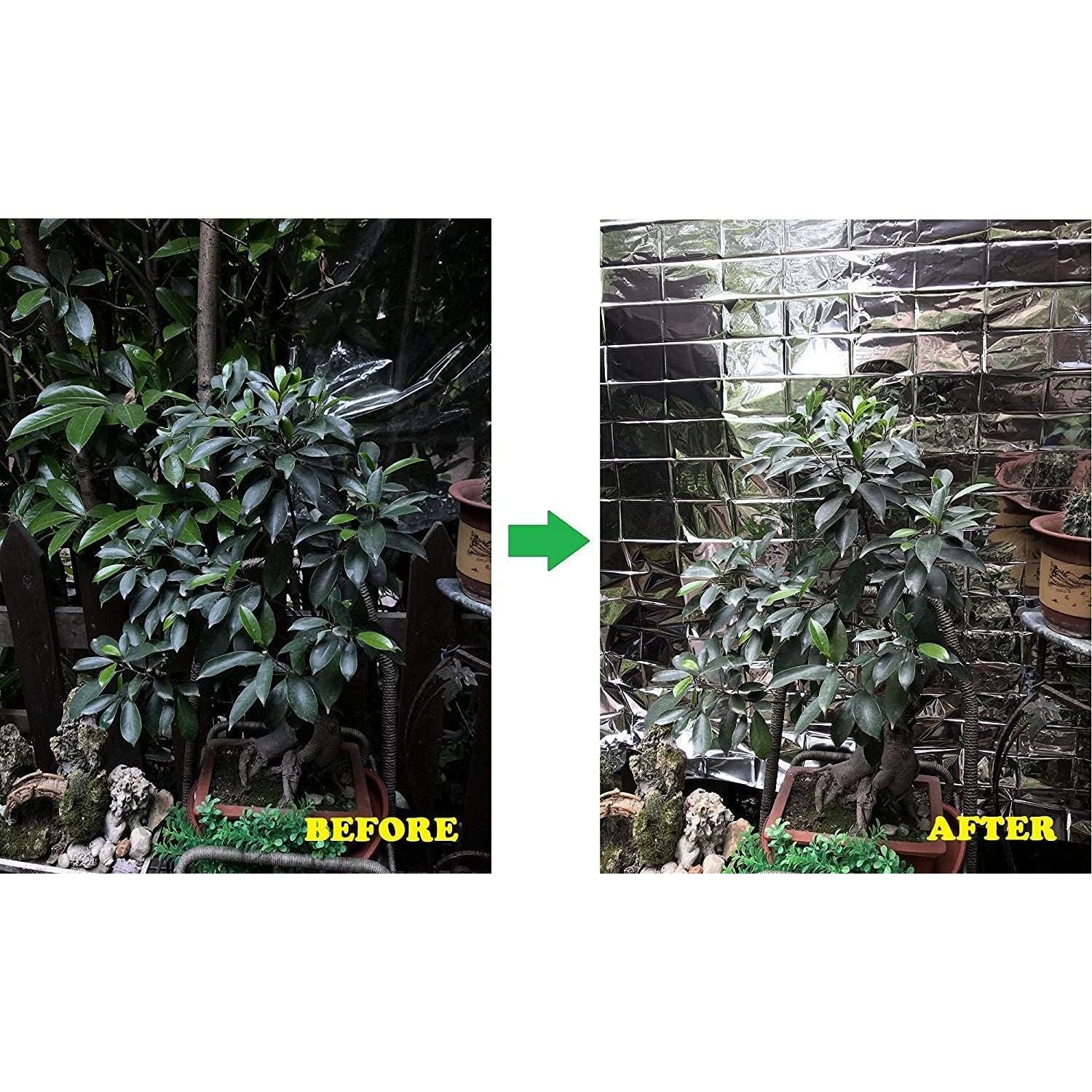 - A HELPING HAND FOR PLANTS - Light is an important factor when it comes to achieving a healthy indoor garden. Our mylar film is metallized on both sides. It can reflect back 95% of light and reduces "hot spots" by spreading your light evenly, so that all plants have an opportunity to grow to its fullest potential. It also can protect and shield your eyes from the megawatts grow lights.